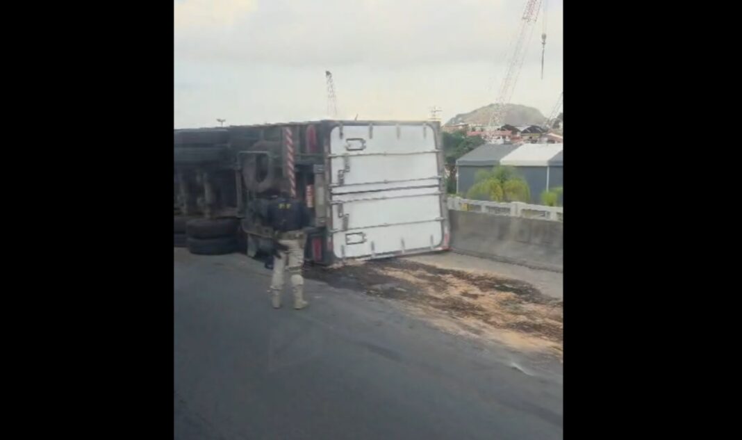 Um caminhão carregado com cerca de 14 toneladas de frutas tombou na madrugada desta terça-feira (28) e voltou a expor um problema recorrente para quem trafega pela BR-101, em Niterói: qualquer intercorrência no trecho rapidamente se transforma em caos no trânsito — especialmente no início da manhã.
