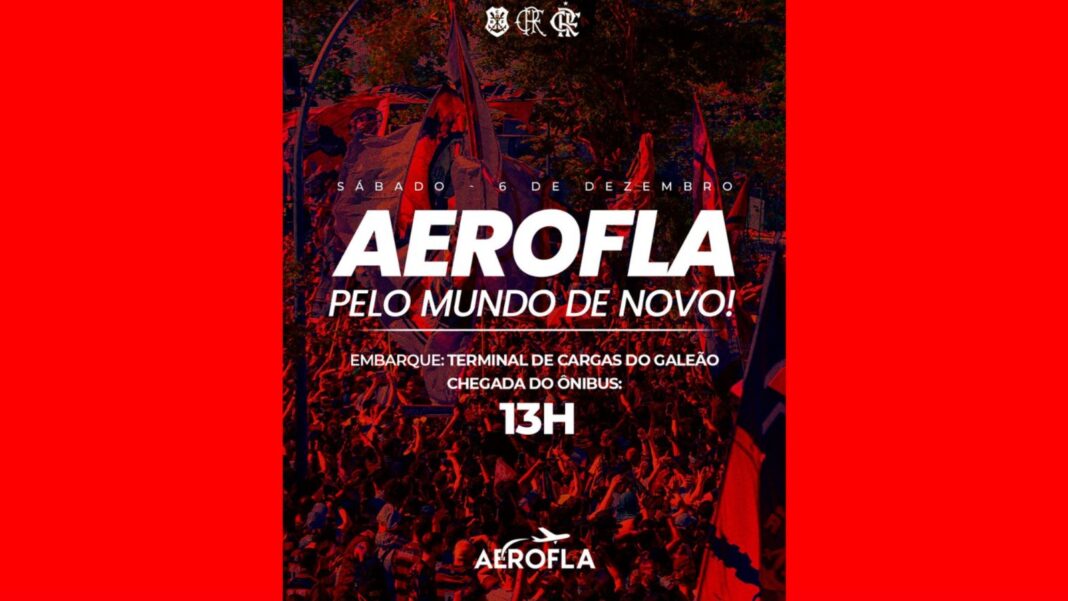 A torcida rubro-negra realiza neste sábado (6) mais uma edição do AeroFla para apoiar a delegação do Flamengo antes do embarque para o Catar, onde o clube disputa a Copa Intercontinental. A concentração dos torcedores começa às 11h, no Terminal do BRT do Fundão, próximo ao Aeroporto Internacional Tom Jobim.