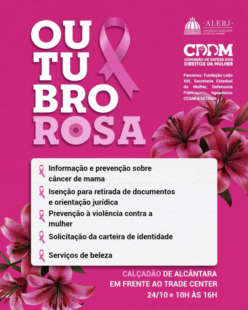 Promovida pela Comissão de Defesa dos Direitos da Mulher da Alerj, presidida pela deputada Lô Porto, a iniciativa oferece informações sobre prevenção ao câncer de mama, orientação jurídica, retirada de documentos e atendimentos essenciais à população feminina.