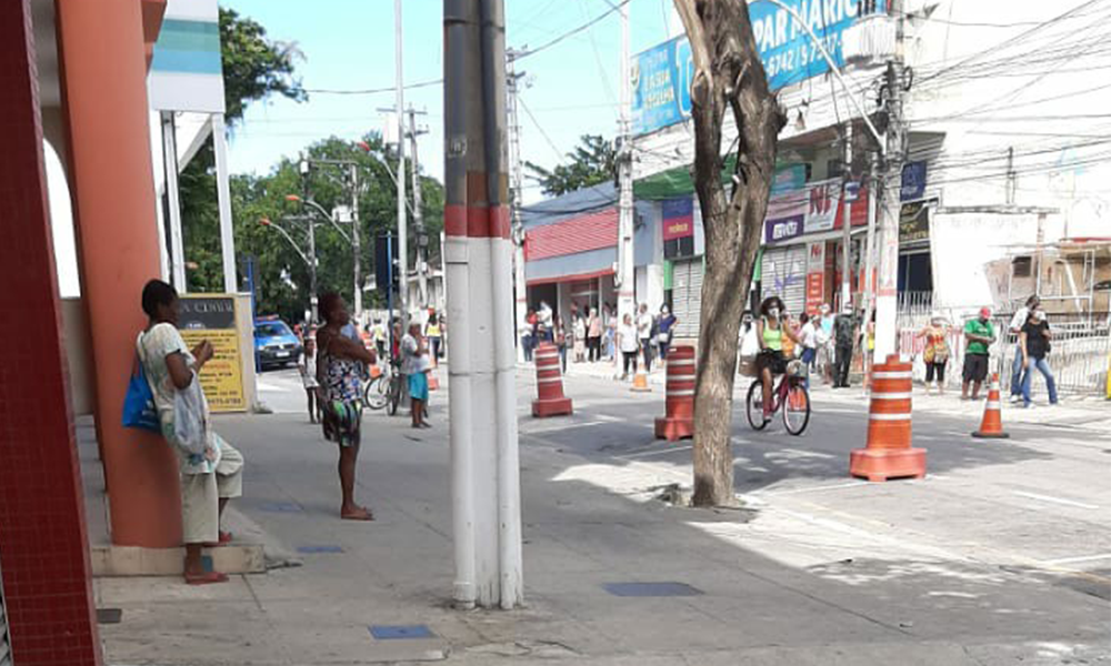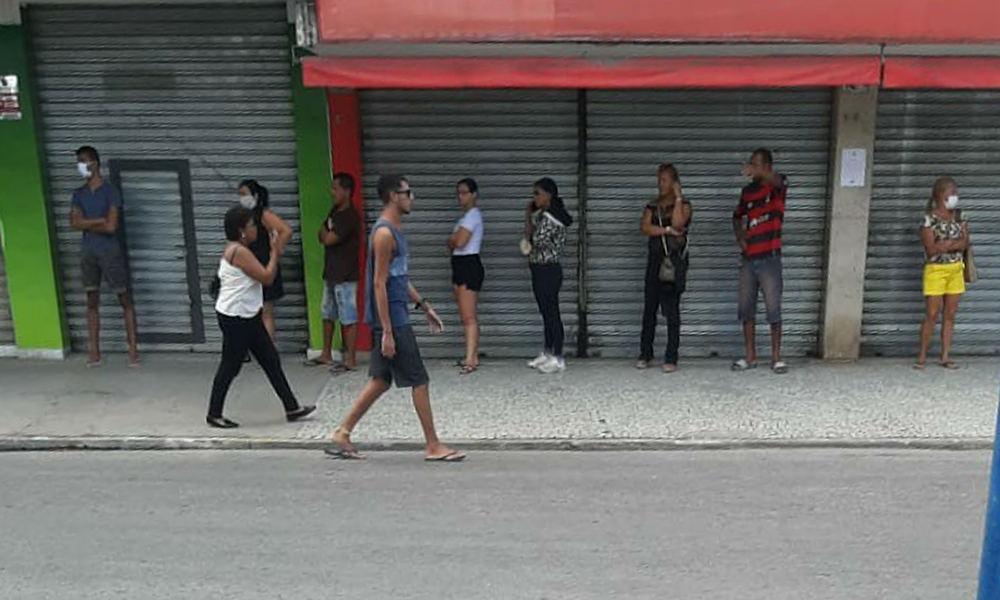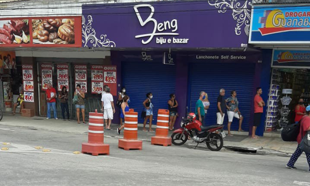 Mais uma semana começa e as ruas do Centro de Maricá permanecem cheias nesse início de segunda-feira (13). A cada minuto que passa, o tamanho das filas para os bancos e lojas aumentam, em claro desrespeito à recomendação do isolamento social.