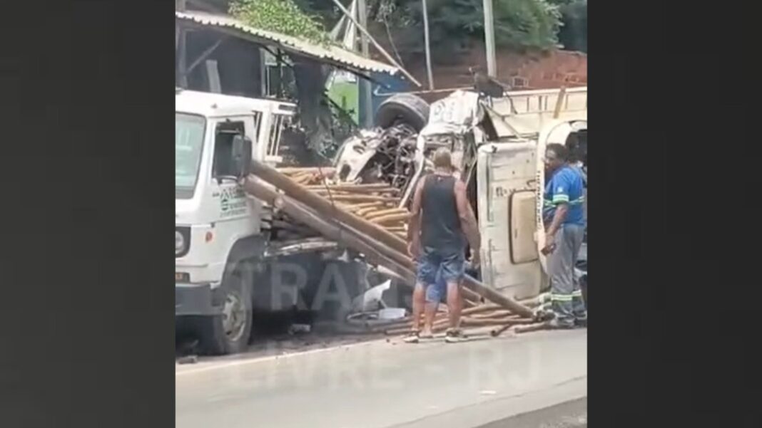 Um acidente envolvendo dois caminhões provoca transtornos no trânsito da RJ-106, na pista sentido Maricá, nesta quinta-feira. Com a colisão, uma faixa precisou ser interditada, causando congestionamento nos dois sentidos da rodovia.
