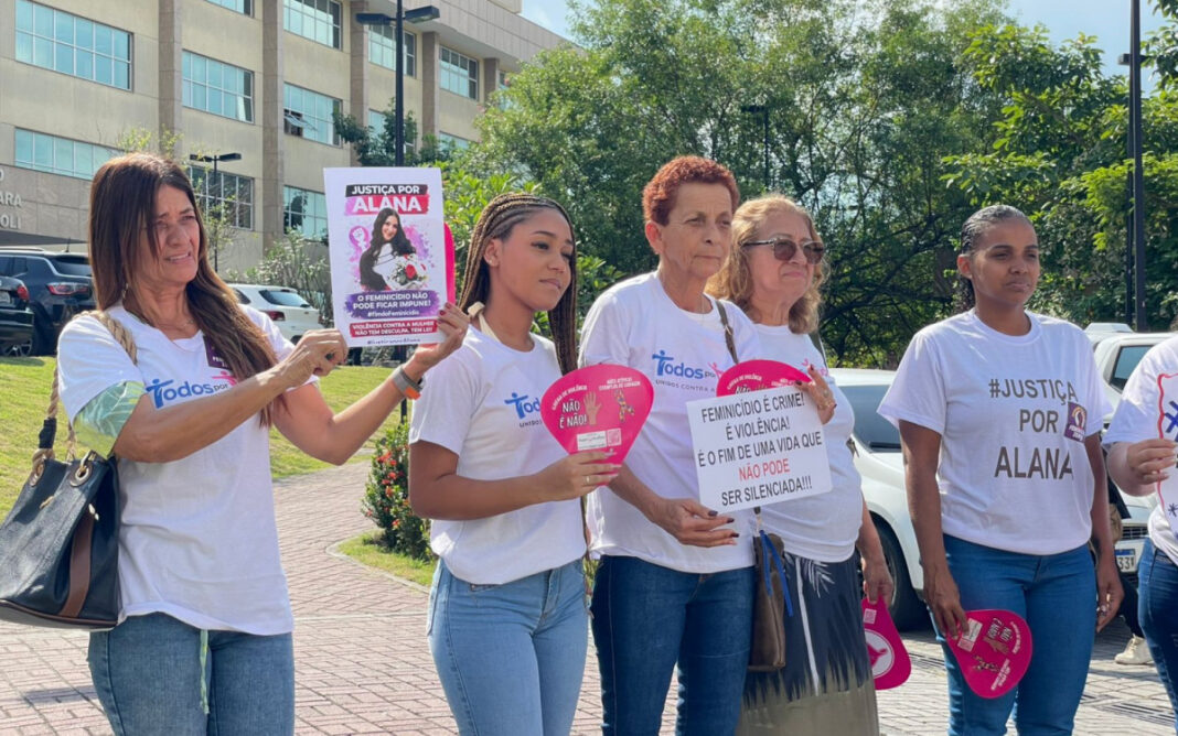 Do lado de fora, cerca de 50 pessoas, entre amigos e parentes da jovem, fizeram uma manifestação pedindo justiça. A mãe de Alana afirmou que espera uma punição severa para o acusado.