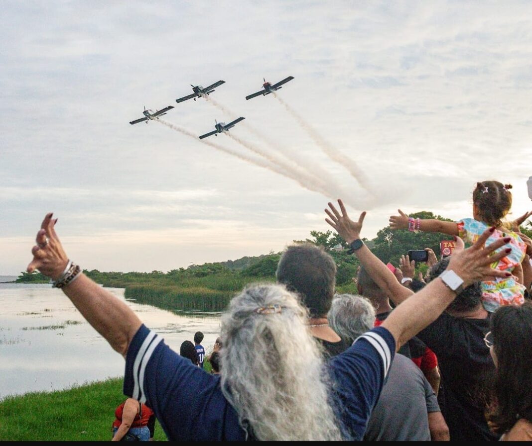 A Esquadrilha Céu realizou três apresentações no Parque Nanci, com manobras radicais, como loops e parafusos, e riscaram o céu do bairro com muita fumaça. No encerramento, as aeronaves desenharam um coração gigante sobre a lagoa para se despedir do público que lotou a orla.