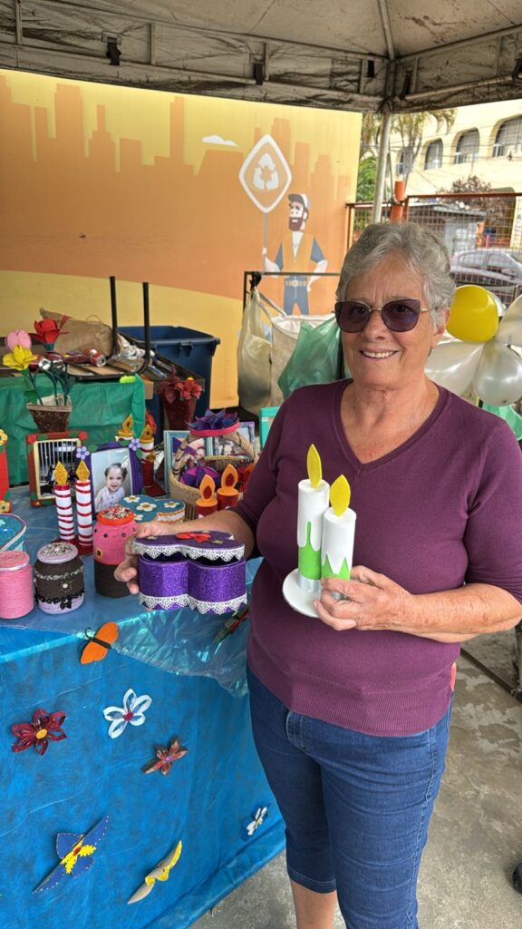 “Estava dentro de casa, com ansiedade, e essa programação foi maravilhosa. Foi o que me motivou a procurar outras atividades, como pilates. Sempre morei aqui, mas só agora, com essa ação, fiz amizades com as outras integrantes. Aqui, a gente formou uma família. Gostei de tudo, principalmente de trabalhar com papelão.”