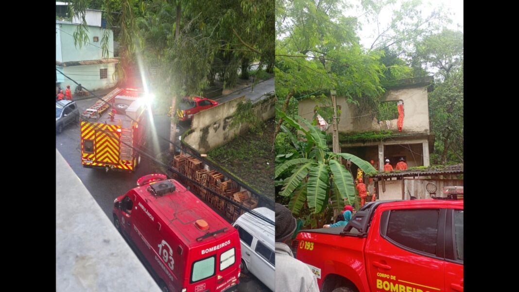 O Corpo de Bombeiros foi acionado na madrugada desta sexta-feira (6) após a força de um forte temporal provocar o desabamento de uma casa em São Gonçalo, na Região Metropolitana do Rio de Janeiro.