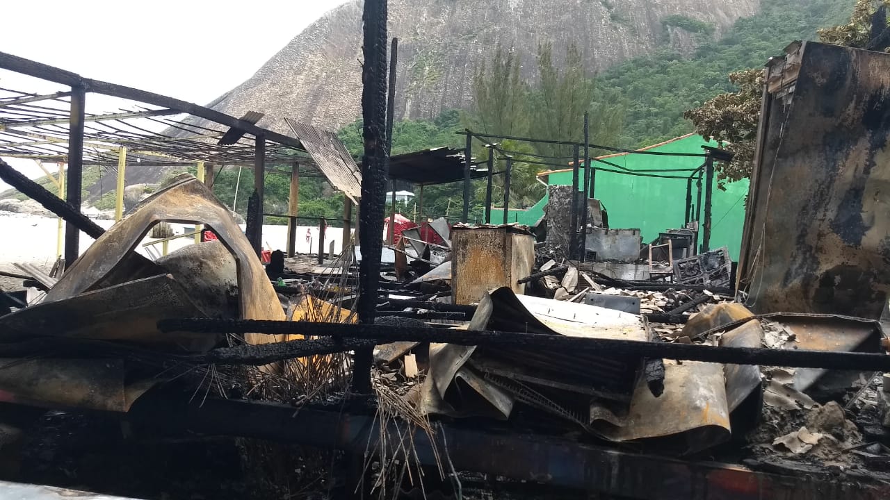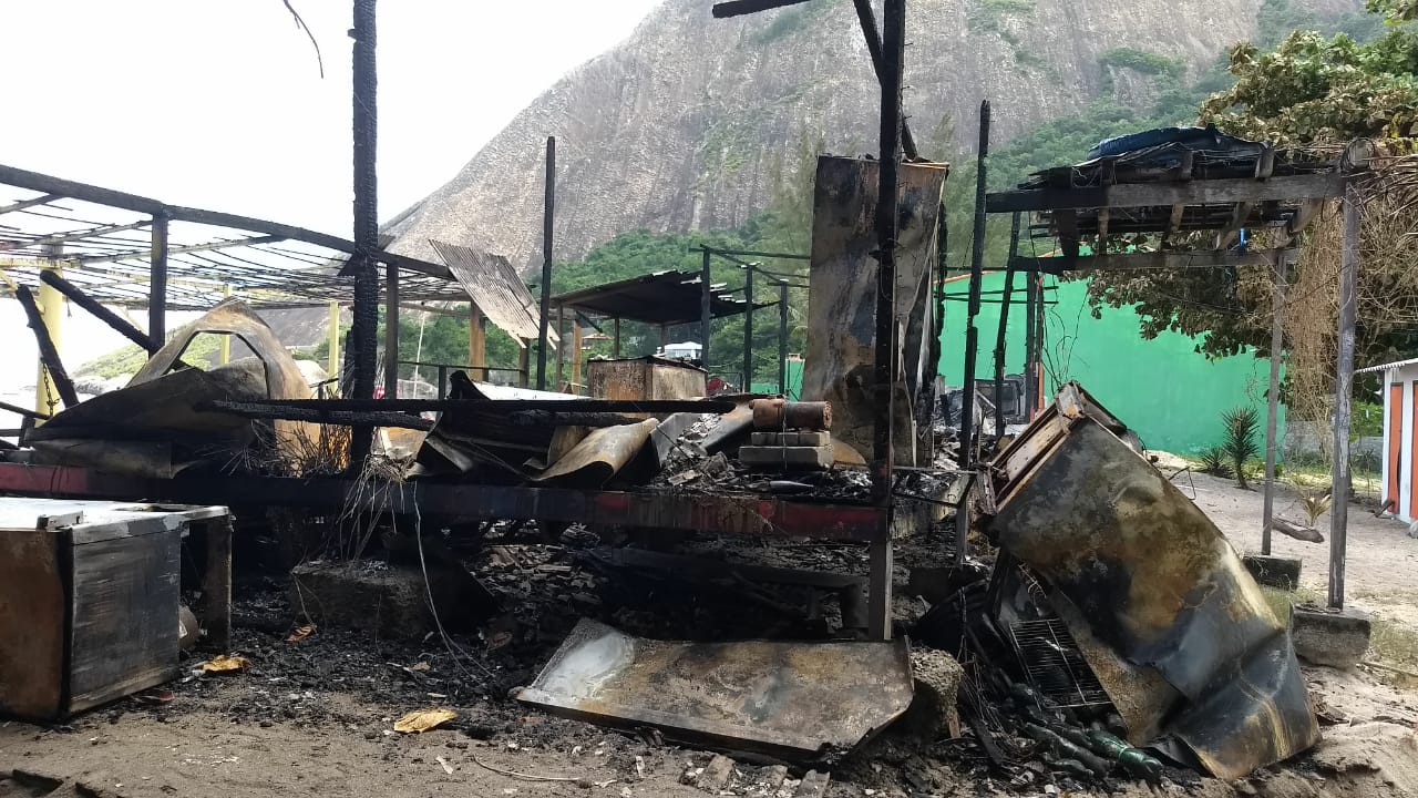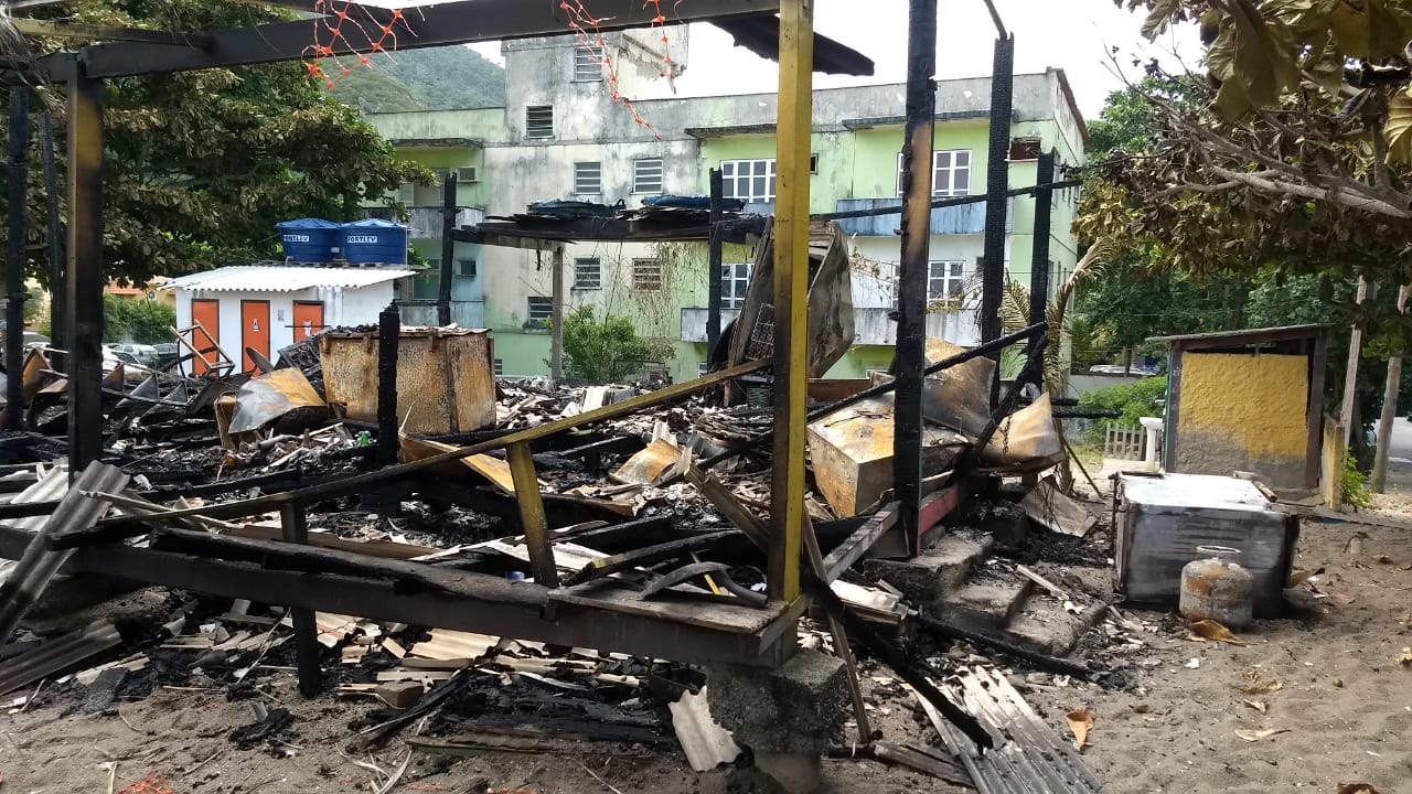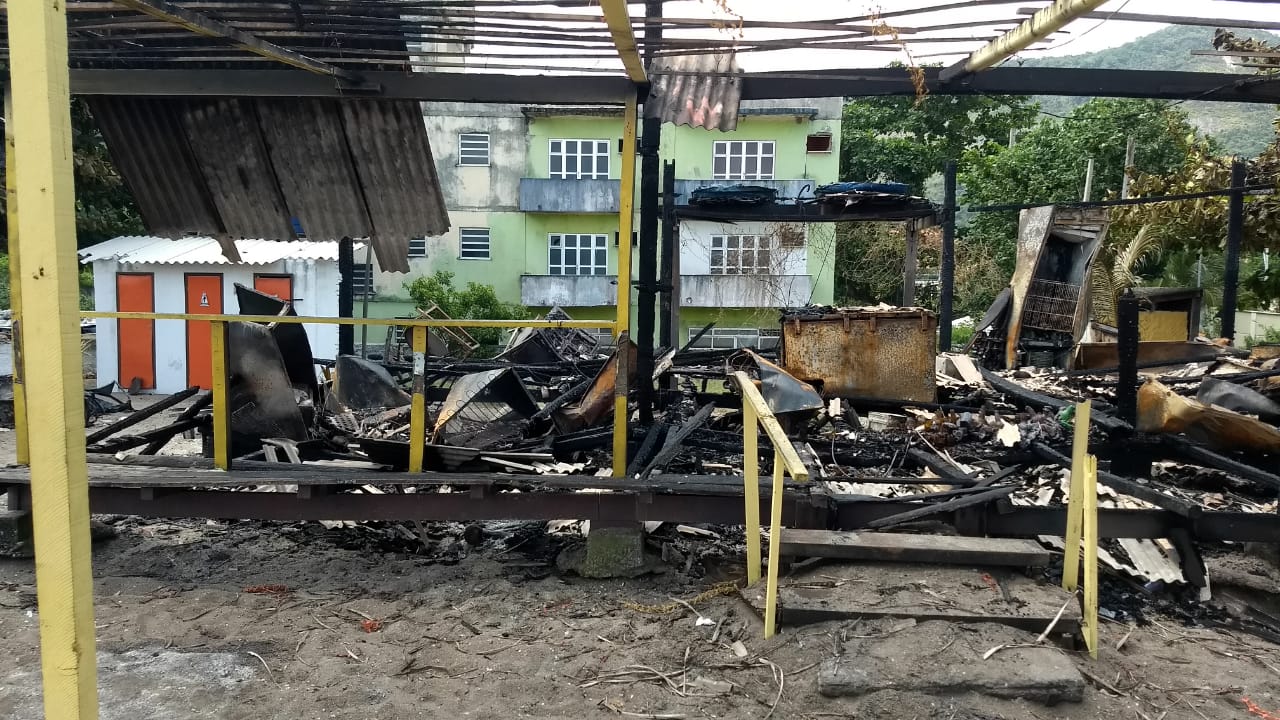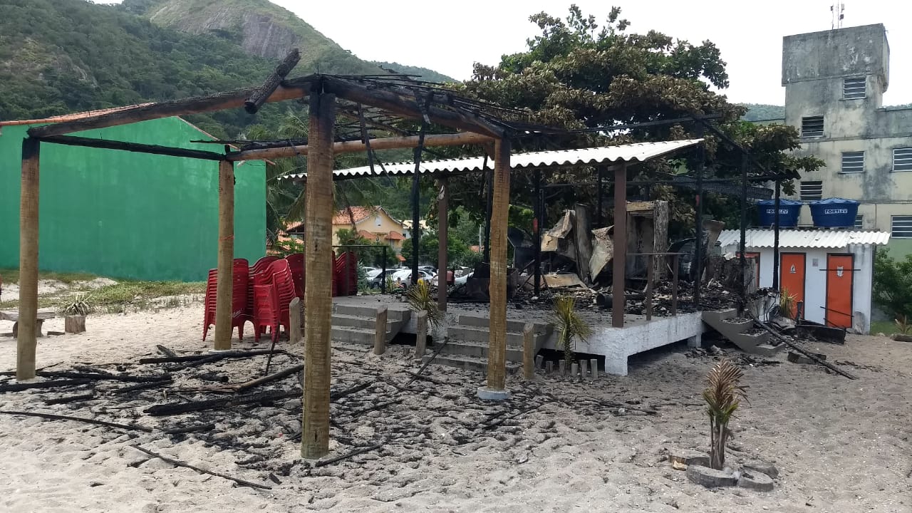 Dois quiosques foram totalmente destruídos por um incêndio na localidade conhecida como “Recantinho de Itaipuaçu”. Foram totalmente tomados pelas chamas os Quiosques “Laranjão” e “do Ney”.