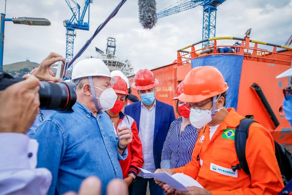 O ex-presidente mandou um recado para os trabalhadores da indústria naval. “Não deixem destruírem o que vocês construíram. São 15 milhões de brasileiros desempregados. A gente tem que reagir e defender esse país. O Brasil não é do Bolsonaro”, falou.