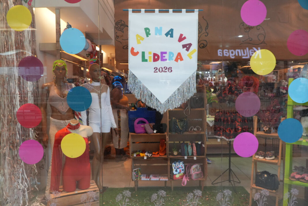 Com a proximidade do Carnaval, a equipe do espaço preparou uma ambientação temática e colocou em destaque produtos como tops customizados com paetês, brincos de fitas, arcos decorados e roupas carnavalescas feitas à mão.