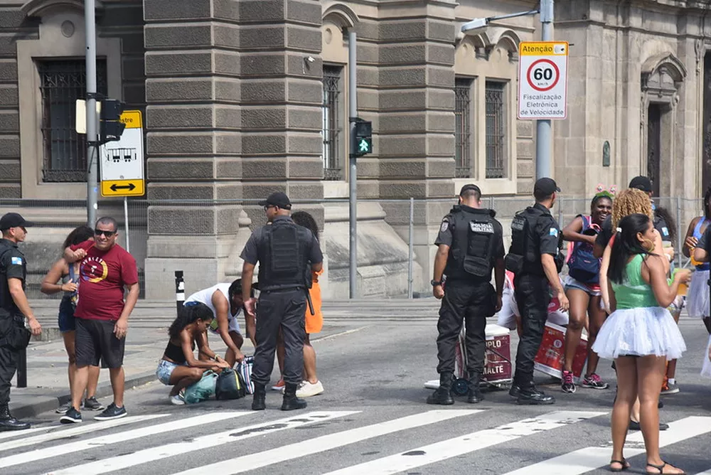 Equipes do Grupamento de Patrulhamento em Multidão (GPM) circularam entre os foliões para prevenir tumultos, enquanto a operação foi coordenada a partir de um carro-comando instalado próximo à Alerj, na Avenida Antônio Carlos.