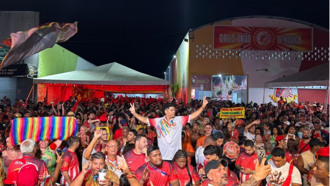 A festa começou cedo na quadra da União de Maricá, às margens da RJ-106, próximo a uma das entradas da cidade. Torcedores e integrantes chegaram confiantes e transformaram o espaço em um verdadeiro reduto de esperança e celebração. A cada nota revelada na apuração, especialmente na virada dos quesitos finais, a emoção só aumentava.