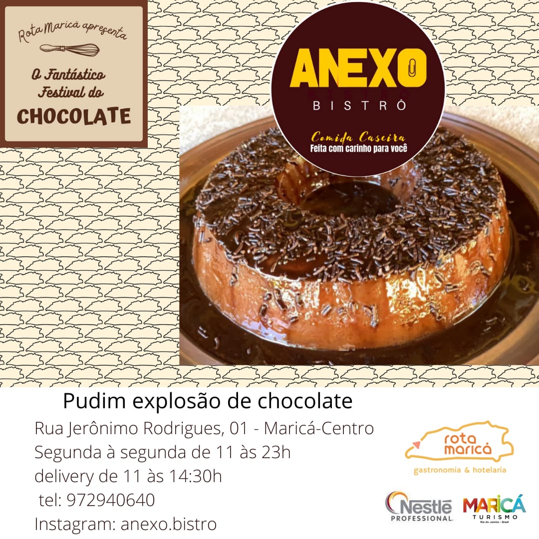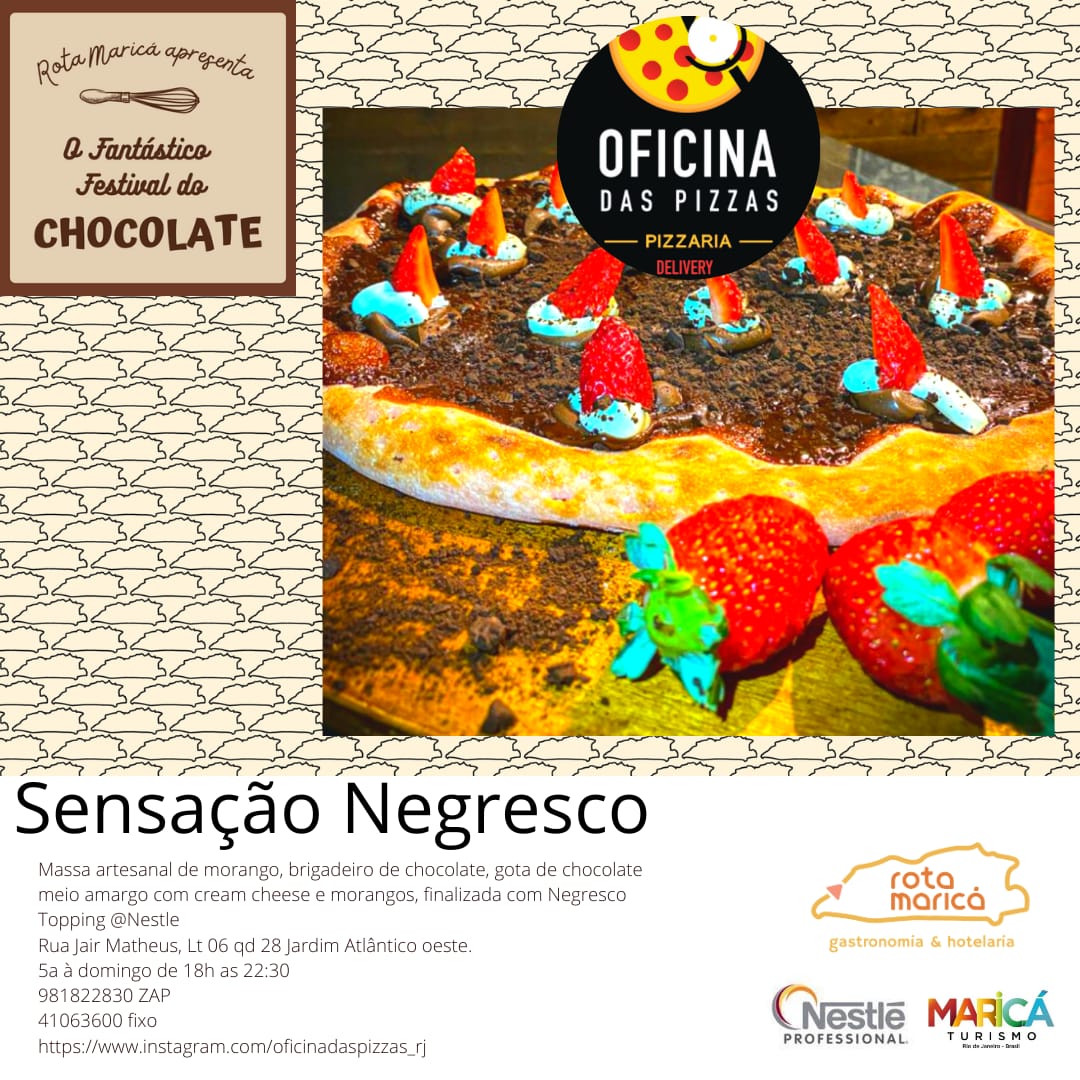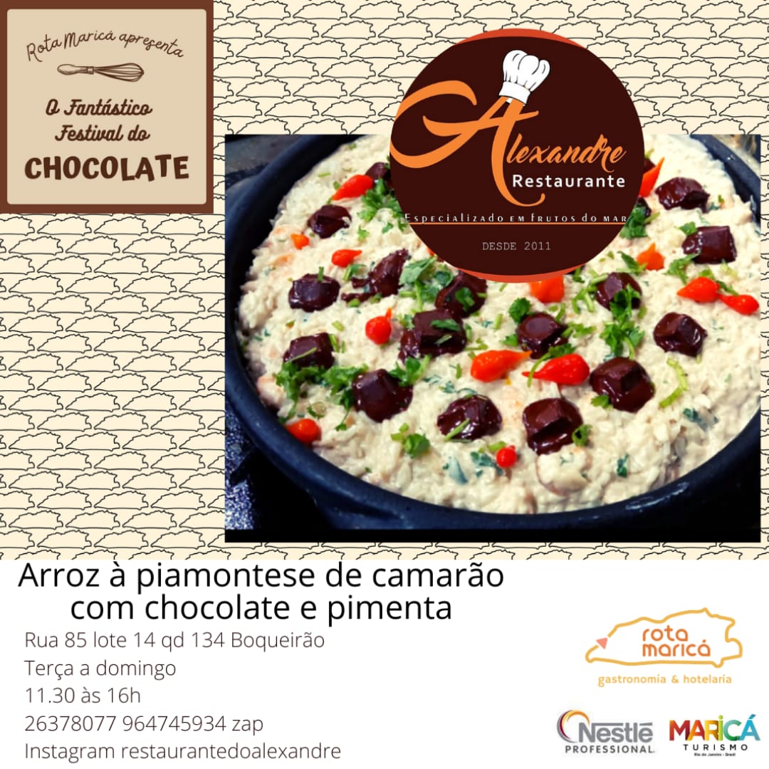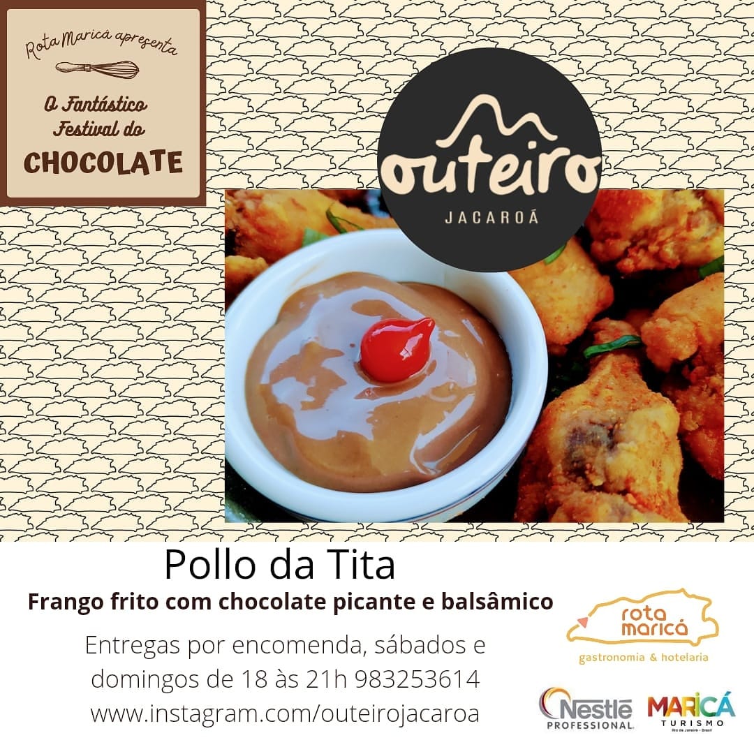 Ficar em casa em Maricá pode ficar mais gostoso, a Rota Maricá- Gastronomia e Hotelaria promove a partir desta sexta-feira (26) o Fantástico Festival do Chocolate, que vai até o dia 10 de abril. Ao todo serão 24 estabelecimentos participantes com o mais variados cardápios, que vão de hambúrguer com pão de caramelo e barbecue de chocolate , frango frito com molho picante de balsamico e chocolate a pizza de kit kat com borda de chokito.