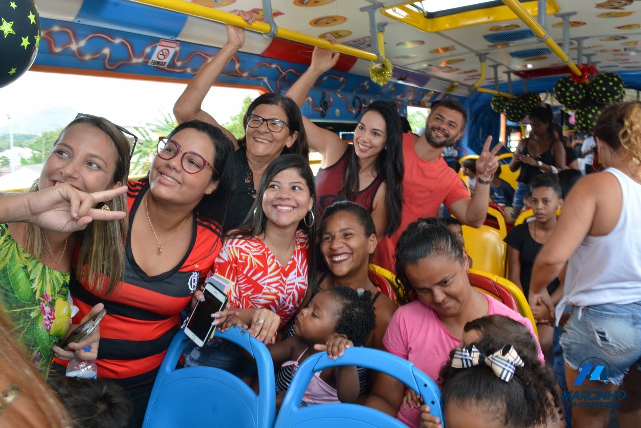 Personagens como Patati & Patatá, Homem-Aranha e Popeye também marcaram presença! O “Busão da Alegria”, um ônibus iluminado, musical e cheio de brincadeiras, também fez muito sucesso com a criançada.
