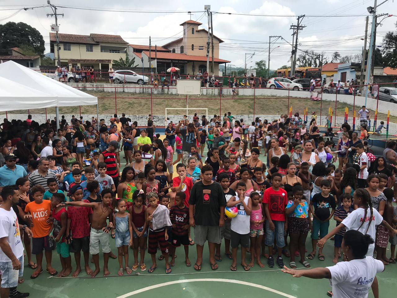Festa em Inoã reúne centenas de crianças na quadra da Maré