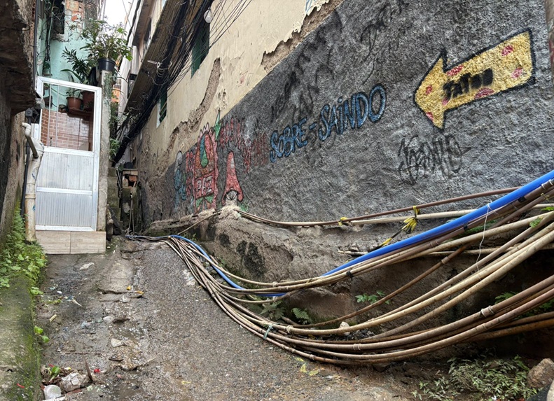 A Rocinha está se livrando dos “macarrões” — aquelas tubulações improvisadas que cruzam becos e vielas e trazem riscos de contaminação, quedas e alagamentos. A concessionária Águas do Rio está reestruturando o sistema de abastecimento da área conhecida como Roupa Suja, sobre o Túnel Zuzu Angel, beneficiando mais de 16 mil moradores. Já foram retirados 800 quilos de canos irregulares.