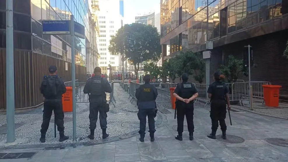 O policiamento foi reforçado com presença de um camburão da PM, ambulância e cerca de 20 agentes do Batalhão de Choque patrulhando a região. Para organizar o fluxo, ruas como Primeiro de Março e Presidente Antônio Carlos estão totalmente interditadas desde as 5h. A CET-Rio orienta a utilização do metrô, já que linhas de ônibus sofreram desvios e o Terminal Menezes Cortes teve pontos de embarque alterados.