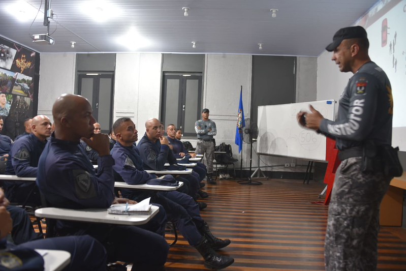 O treinamento acontece no Batalhão de Rondas Especiais e Controle de Multidão (RECOM), no Centro do Rio, e segue até sexta-feira (16). A atividade inclui troca de experiências, atualização de procedimentos operacionais e práticas voltadas para abordagens, patrulhamento tático e legislação.