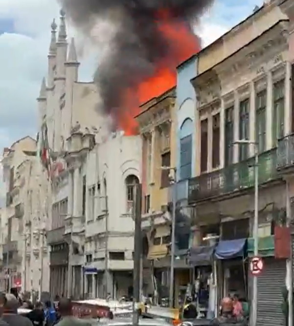 Um incêndio atinge, na manhã desta quarta-feira (22), um imóvel comercial localizado na Rua Luiz de Camões, 16, esquina da Rua da Conceição, no Centro do Rio de Janeiro. O local, segundo informações de populares, seria utilizado como estacionamento.