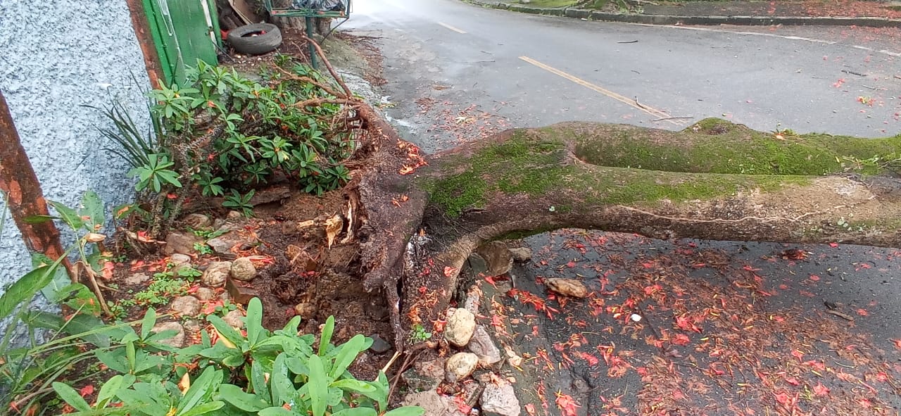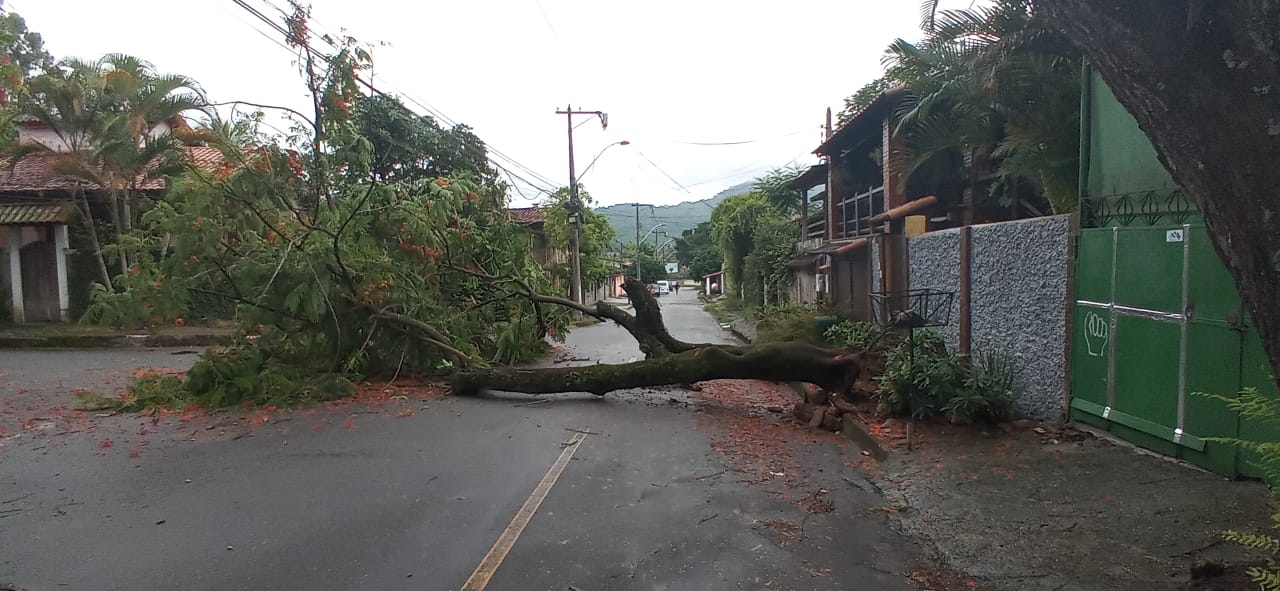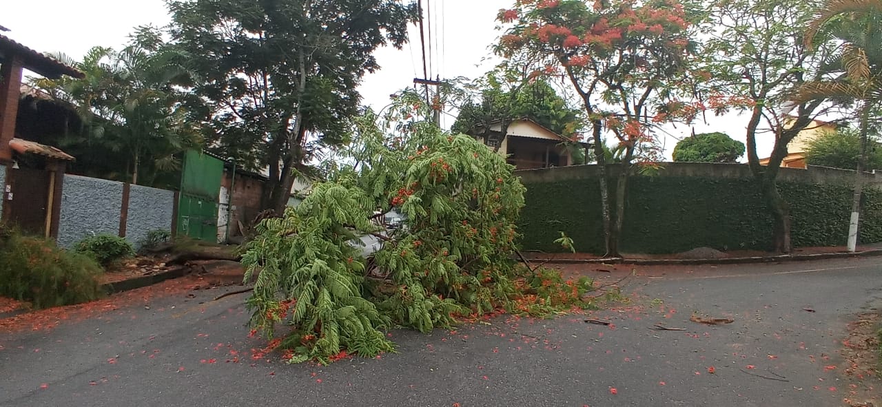 Apesar de não ter atingido a rede de energia elétrica, os moradores da localidade abriram uma ordem de serviço junto à concessionária Enel Distribuição Rio. Explica-se: galhos da árvore estão próximos à rede de alta tensão, o que pode levar perigo para quem passar pelo local.