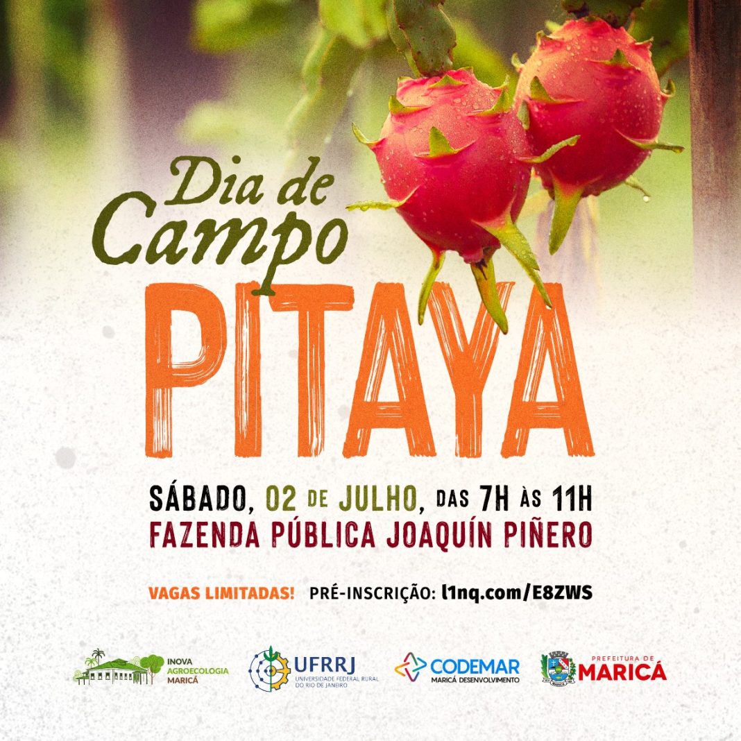 O evento acontece na Fazenda Pública Joaquín Piñero, no Espraiado, e terá transporte disponível saindo às 7h do Terminal Rodoviário do Centro. A ação faz parte das ações do projeto Inova Agroecologia Maricá, uma parceria entre a Companhia de Desenvolvimento de Maricá (Codemar) e a Universidade Federal Rural do Rio de Janeiro (UFRRJ). Em fevereiro, foi realizado um plantio experimental de pitaya em uma área da fazenda com 1.200m², que corresponde a aproximadamente 25% de toda a área do experimento.