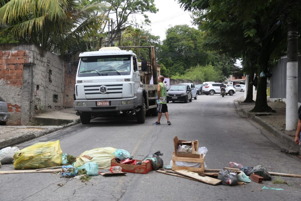 Uma equipe da Polícia Militar esteve no local e a rua foi desobstruída.