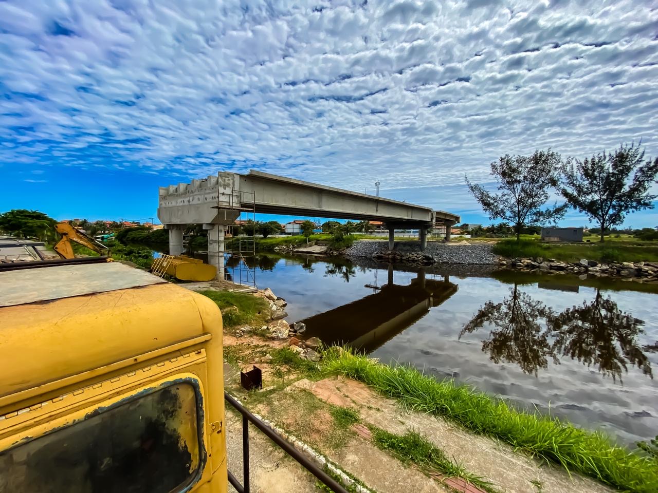 Construída sobre a lagoa da Guarapina, a nova estrutura, que vai ligar as duas margens, terá duas faixas de rolamento e guarda-corpos para transeuntes em ambos os lados, com largura total de 11 metros. A extensão será de aproximadamente 50 metros com vão livre sobre o curso d’água de 41 metros, além de 4,5 metros de altura. A ponte vai passar também por cima das ruas Capitão Caetano e Benjamin Silva.