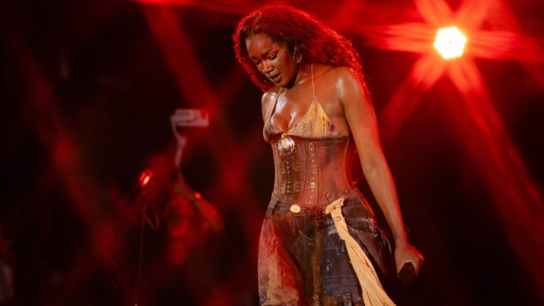 No palco, IZA apresenta o espetáculo “Caos e Sal”, que reúne sucessos como “Brisa”, “Pesadão”, “Meu Talismã” e “Fé”, além de novas músicas e faixas do álbum “Afrodhit”.