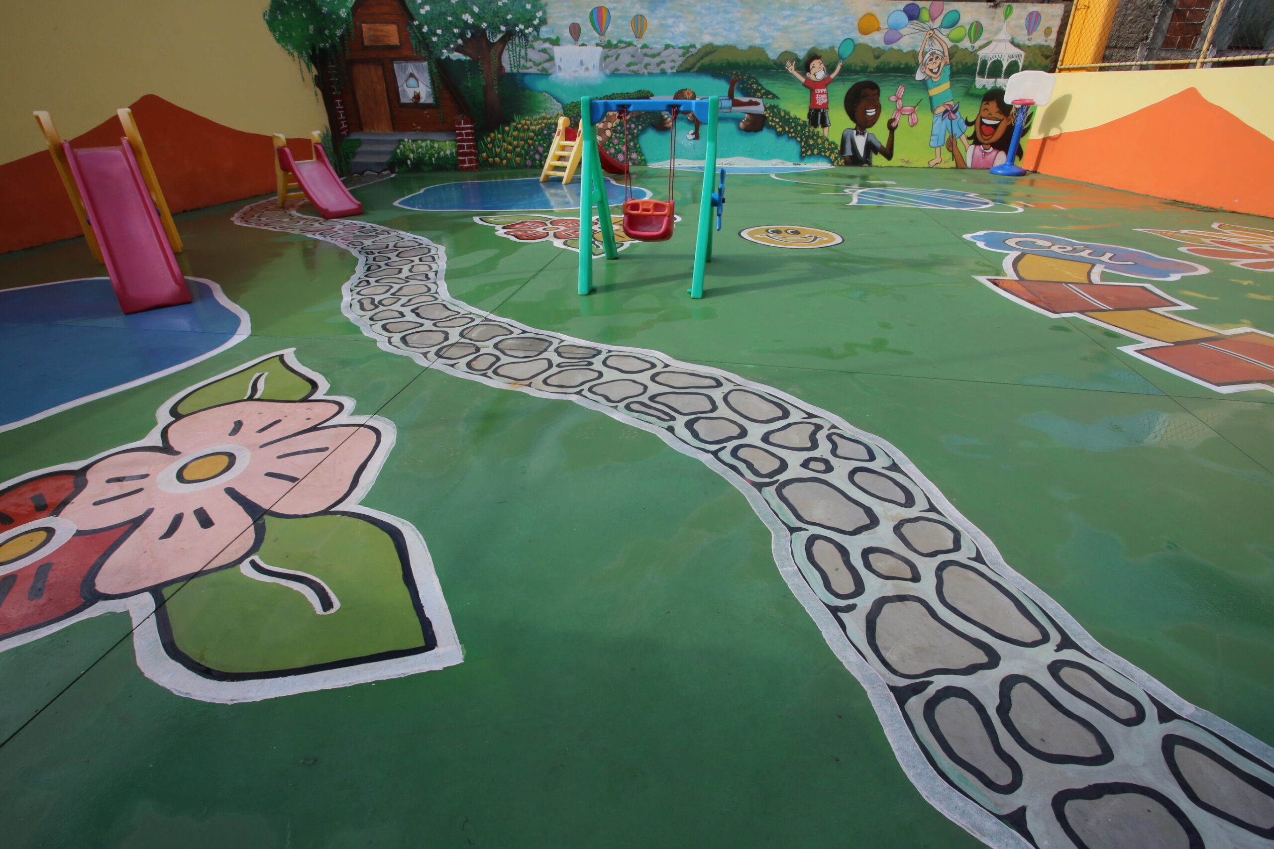 Na unidade, houve a reforma das paredes internas, pintura dos ambientes, novo piso externo, novos pátios interno e externo para as crianças brincarem, além de uma quadra. A parte elétrica também passou por intervenções e as salas foram climatizadas.