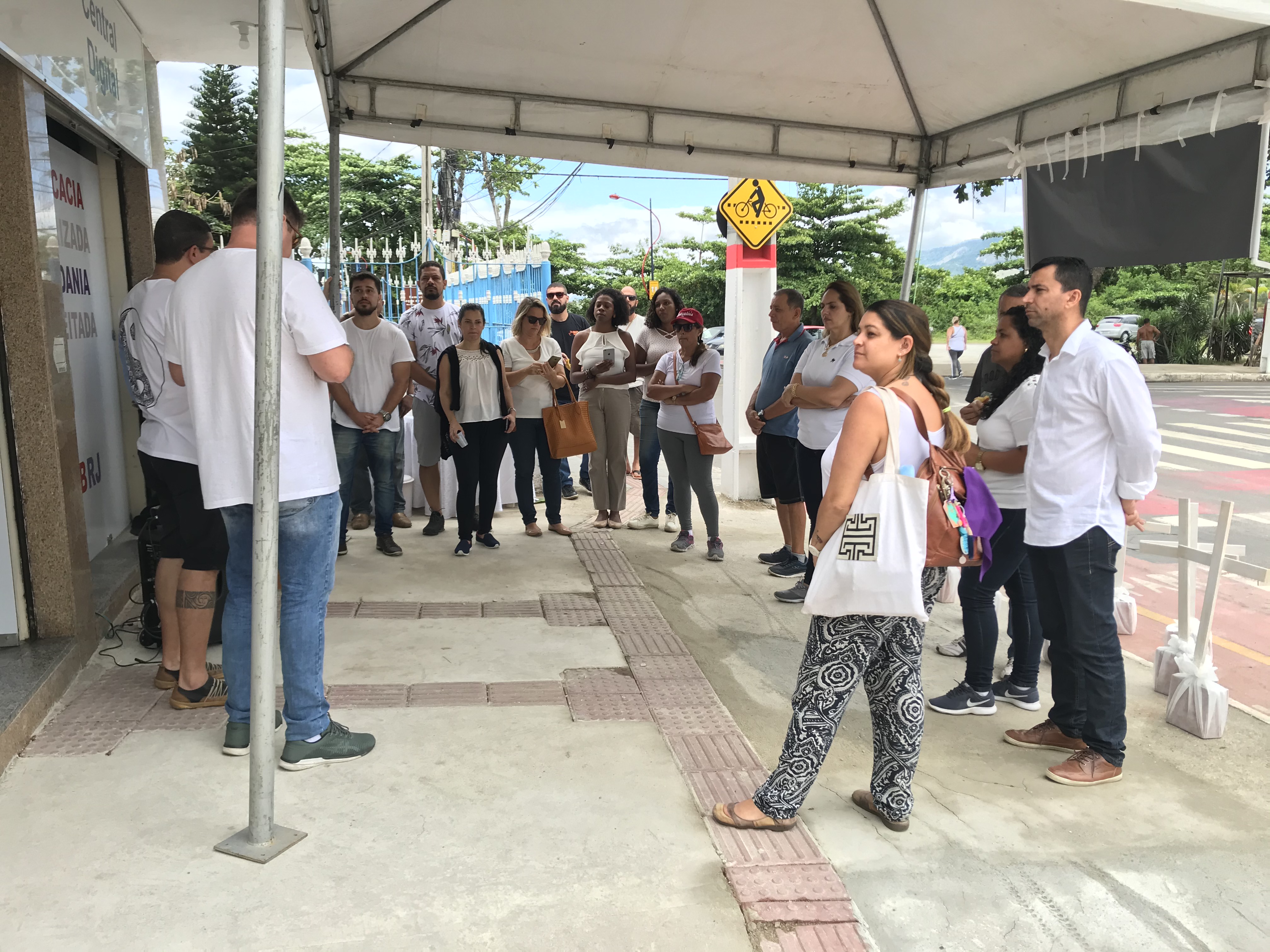Todos os manifestantes estavam vestindo branco, e cruzes foram colocadas na frente da sede do órgão. Um representante da Organização Não-Governamental (ONG) Rio de Paz também esteve presente para prestigiar e trazer conhecimento e expertise da ONG no auxílio ao combate da violência na cidade.