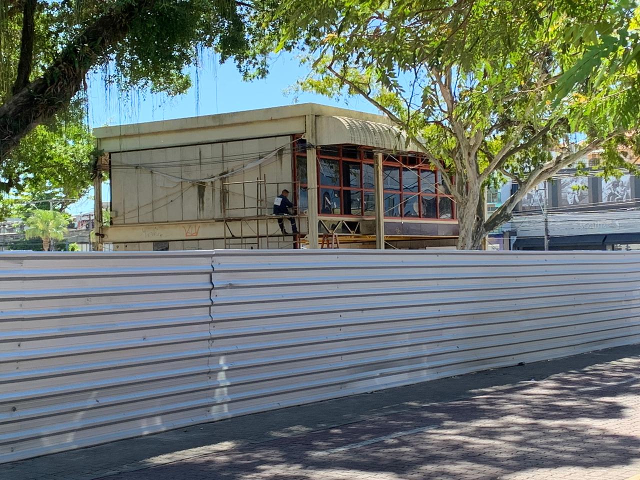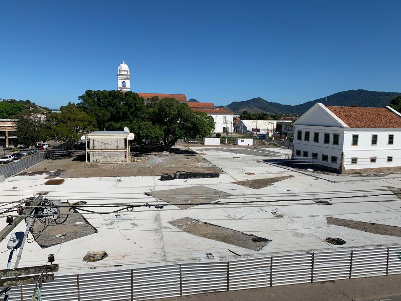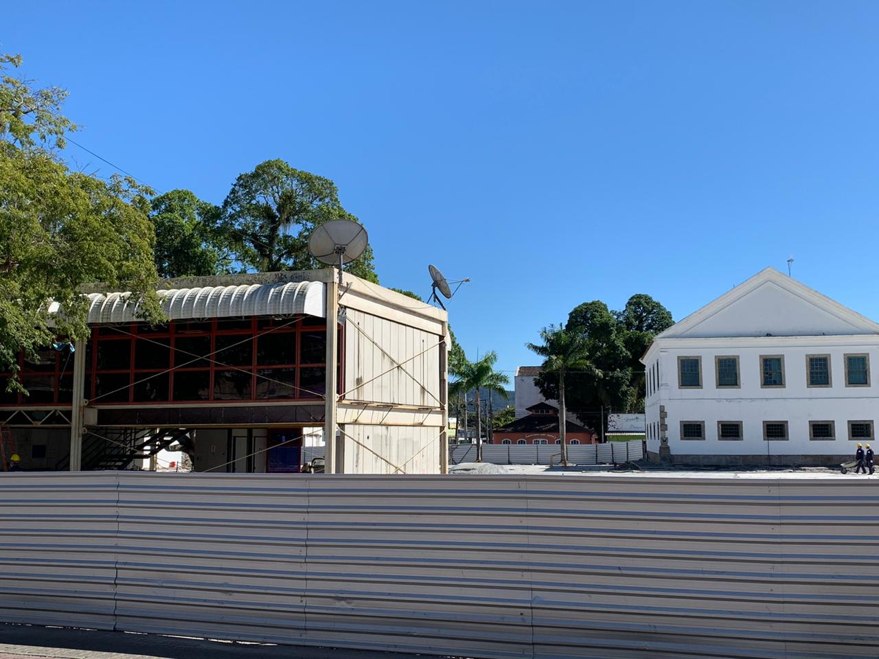 Operários estão concentrados na retirada das placas que faziam parte da instalação do imóvel. Além disso, o processo de concretagem já atinge a 75% do espaço da nova praça. A instalação do sistema de drenagem já foi implantada, marcação dos locais que receberão pisos em tonalidades diferentes e concretagem para recebimento do piso em granito também estão prontas.
