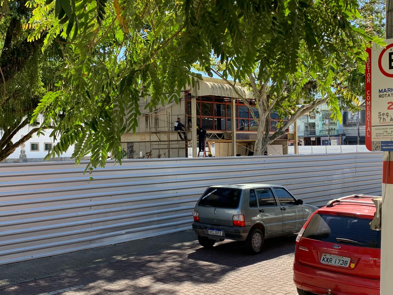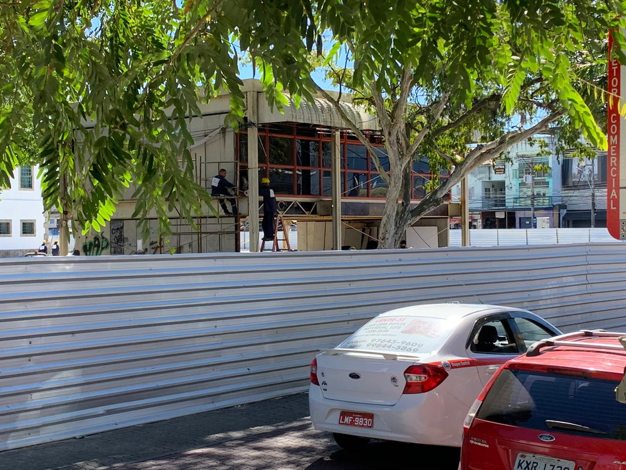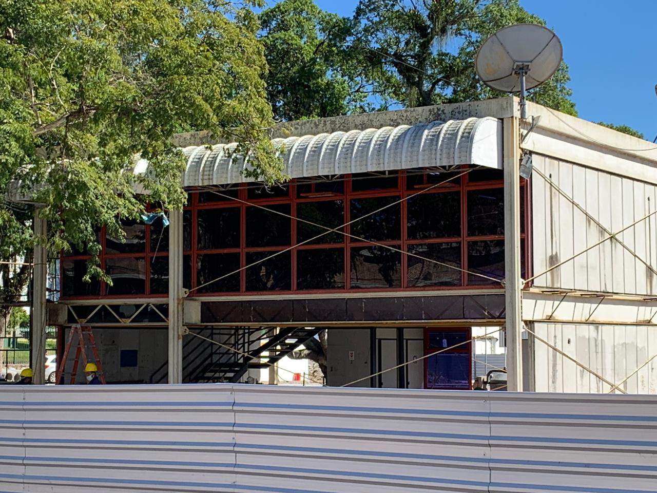 Operários estão concentrados na retirada das placas que faziam parte da instalação do imóvel. Além disso, o processo de concretagem já atinge a 75% do espaço da nova praça. A instalação do sistema de drenagem já foi implantada, marcação dos locais que receberão pisos em tonalidades diferentes e concretagem para recebimento do piso em granito também estão prontas.