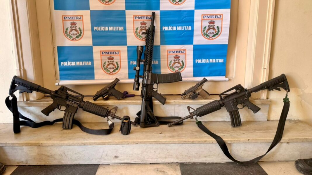 Durante a ação, os policiais apreenderam três fuzis calibre 5.56, duas pistolas calibre 9 mm, duas granadas, um rádio comunicador e uma quantidade de munições, que será contabilizada.