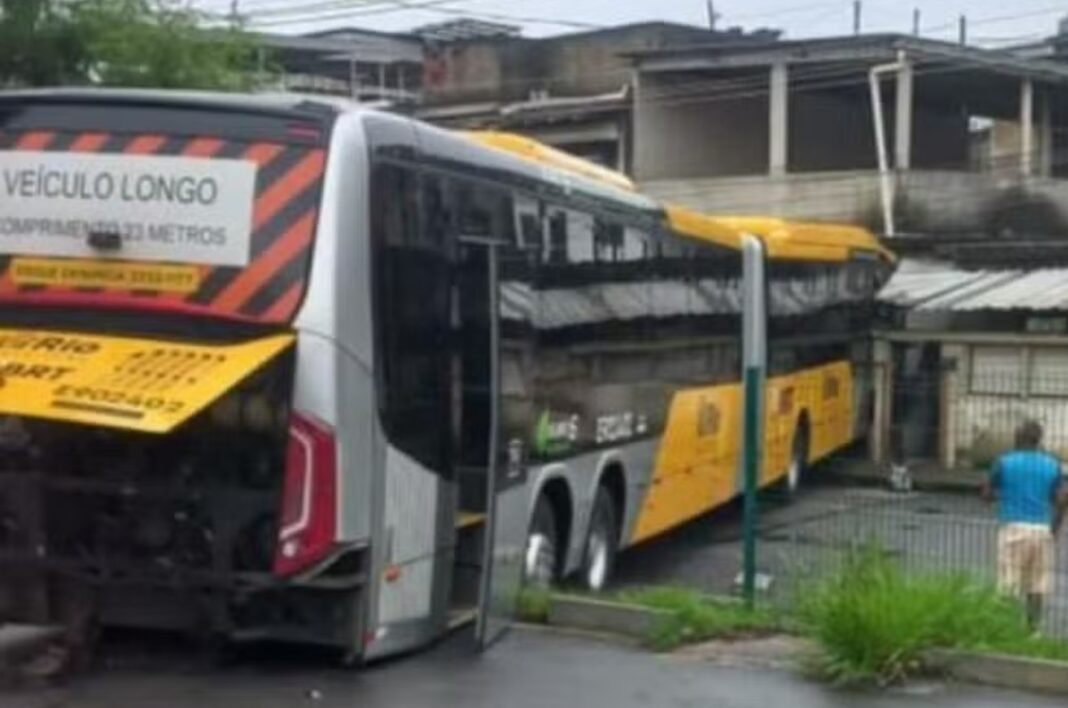 Um ônibus articulado do sistema BRT invadiu uma casa localizada ao lado da garagem de Deodoro, na Zona Oeste do Rio de Janeiro, na manhã deste sábado (24). Apesar do susto, não houve registro de feridos.