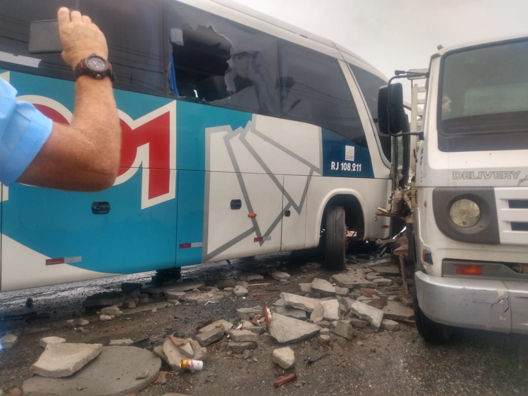 Uma colisão entre um caminhão e um ônibus da linha “Araruama x Niterói” deixou um ferido na tarde desta quinta-feira (23) em Inoã, na altura do KM 13. O acidente complicou o trânsito no sentido Niterói.