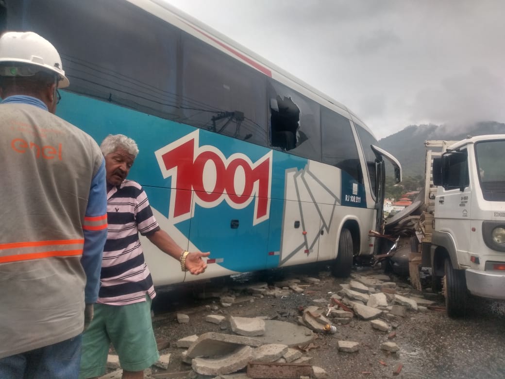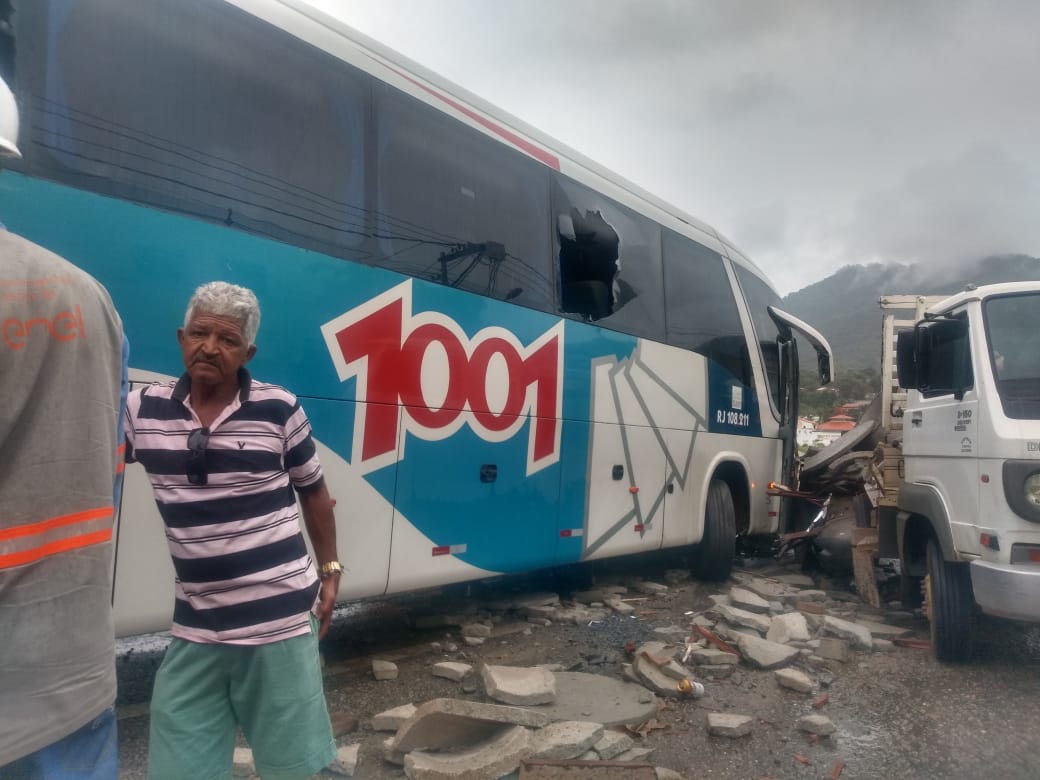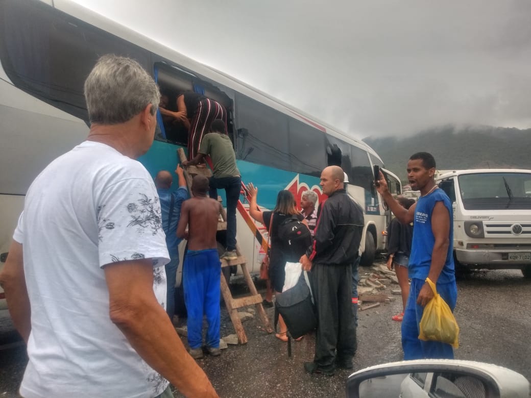 Agentes do Corpo de Bombeiros do Destacamento de Maricá estiveram no local para socorrer a vítima. Os passageiros do ônibus precisaram sair pela laterais do veículo com o auxílio de uma escada.