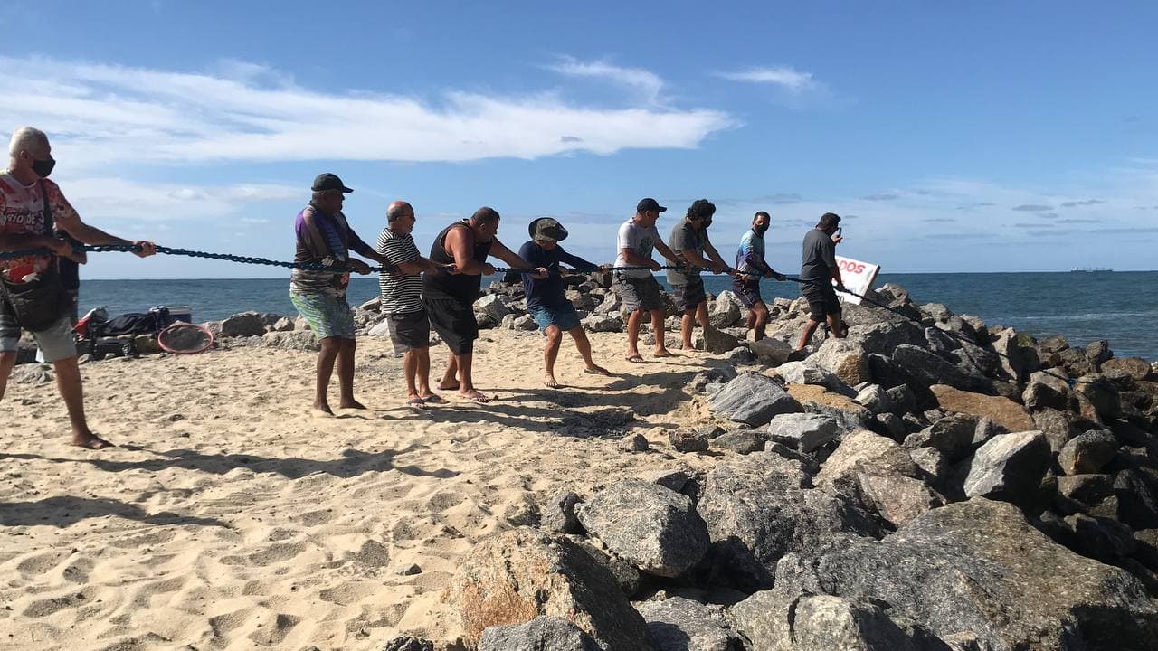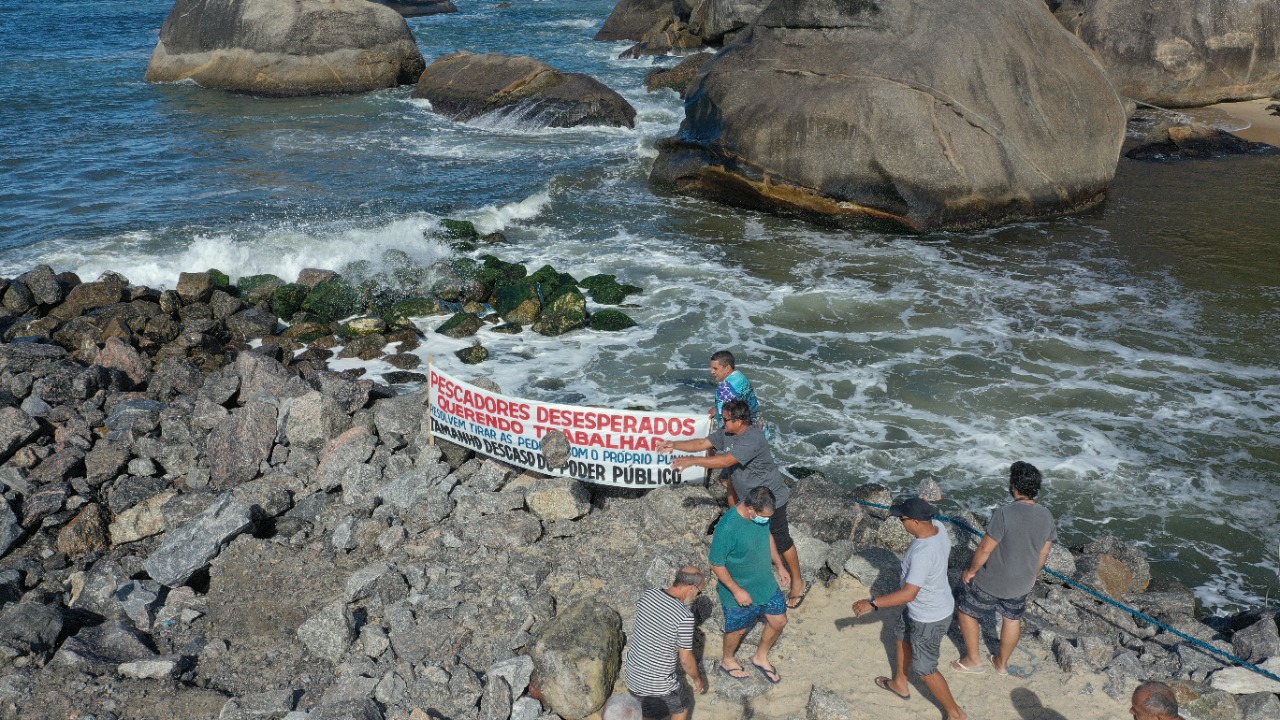 “O que estamos pedindo é a retirada das pedras para a entrada dos barcos. Já tivemos acidentes aqui. As pedras foram parar ali por conta da paralisação da obra e as ondas acabaram espalhando as pedras. Só queremos condições seguras para entrar e pescar”, contou Cláudio Isaac, vice-presidente da Colônia de Pescadores Z-7.