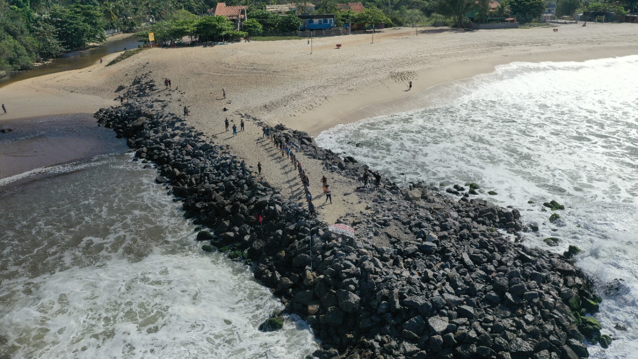 Dezenas de pescadores participaram, na manhã desta terça (25), de uma manifestação no Molhe do Recanto, no Recanto, em Itaipuaçu. Com a retirada simbólicas de pedras manualmente, os profissionais pediam uma intervenção para a retirada de pedras que rolaram e dificultam a passagem dos pescadores no entroncamento entre o Canal da Costa e o mar.