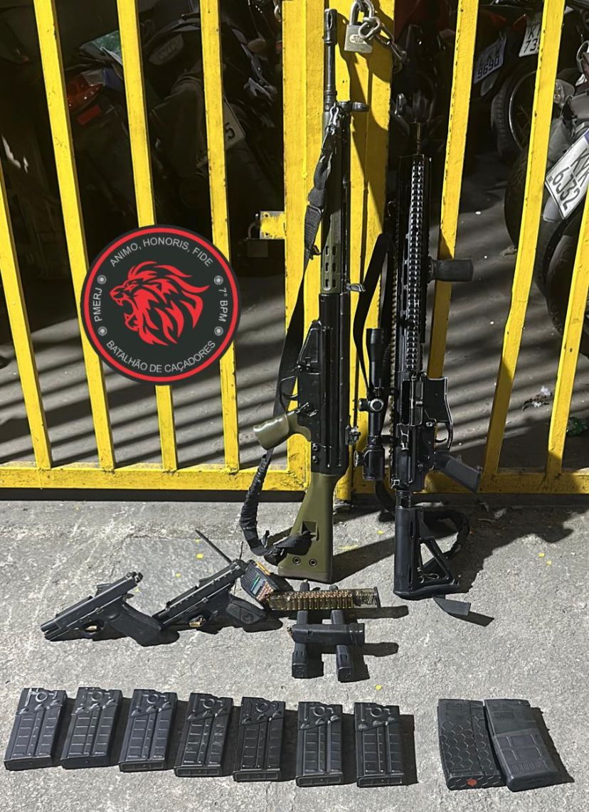No interior do automóvel estavam o policial militar e um homem conhecido pelo apelido de “Lula”, identificado pela polícia como gerente do tráfico na região. Durante a revista, os agentes encontraram uma pistola com o PM. No porta-malas, foram apreendidos dois fuzis, outra pistola, 15 carregadores, 301 munições, um colete à prova de balas e um rádio comunicador.
