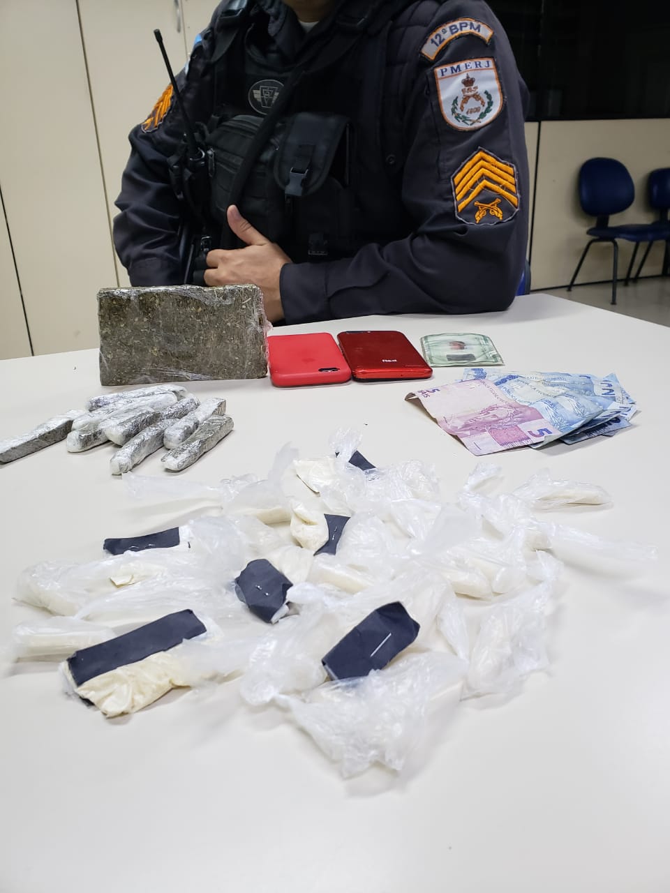 Ainda durante a madrugada, a PM recebeu uma denúncia de que suspeitos estariam traficando na Rua Duque de Caxias, em Ubatiba. Ao chegarem no local citado, os suspeitos empreenderam fuga. Os militares realizaram um cerco policial e dois homens foram presos. Com eles a PM encontrou 30 pinos de cocaína, oito barras pequenas de maconha, um tablete grande de maconha, dois aparelhos celulares e R$ 13 em espécie. A dupla foi encaminhada para 82ª DP onde o caso foi registrado.
