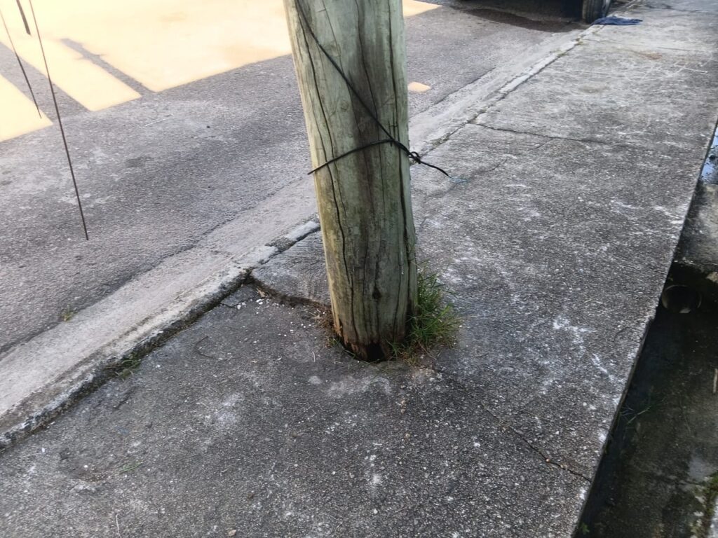 Moradores do bairro Coelho, em São Gonçalo, estão solicitando que a Enel envie uma equipe técnica para verificar a situação de um poste de madeira que apresenta risco de queda.