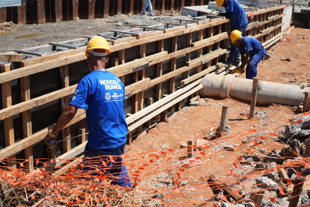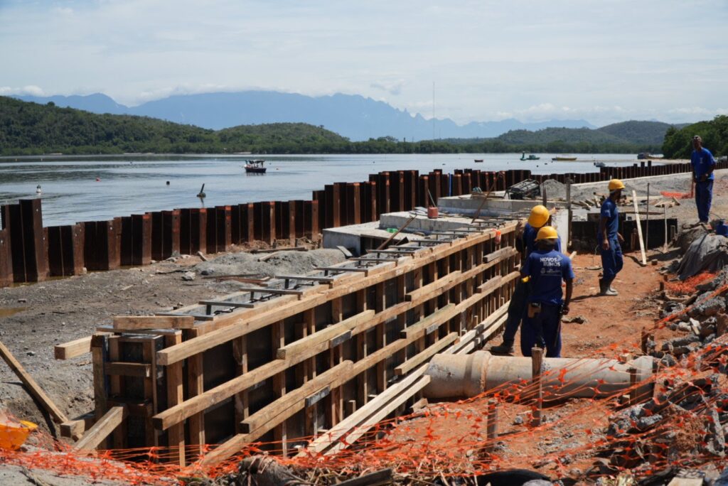 As obras de revitalização da orla de São Gonçalo, na Praia das Pedrinhas, seguem em ritmo acelerado neste início de 2026 e já começam a mudar a paisagem de um dos principais cartões-postais da cidade. Nesta semana, os trabalhos avançam com a construção de escadas de acesso à areia, passarela, novos trechos do muro de contenção e serviços de drenagem, além da implantação de redes de água e esgoto, em parceria com a concessionária Águas do Rio.