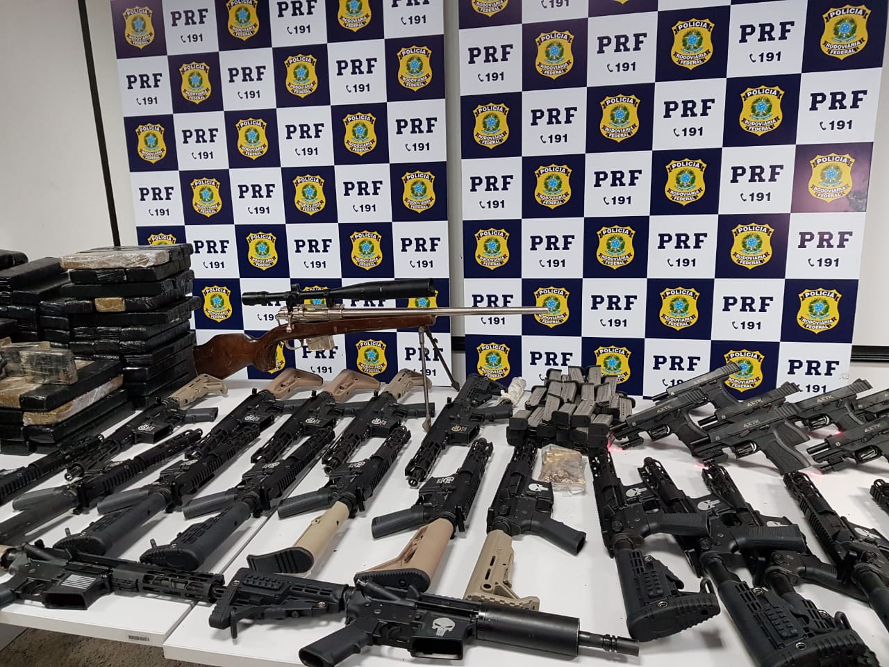Um arsenal de guerra foi apreendido pela Polícia Rodoviária Federal (PRF), durante uma blitz na Rodovia Presidente Dutra (BR-116), em Seropédica, na Baixada Fluminense. Dezenas de fuzis, pistolas e carregadores foram apreendidos, além de centenas de quilos de maconha. O material seria entregue no Complexo da Maré, na Zona Norte do Rio. O flagrante aconteceu na madrugada desta quinta-feira (6).
