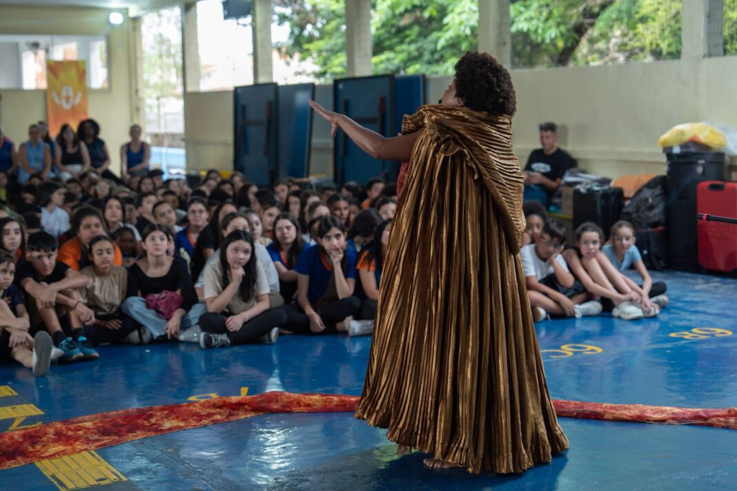 Nesta sexta-feira (17), o Projeto Arena Viva, promovido pelo Instituto Burburinho Cultural, realizou mais uma etapa de sua jornada etnoeducativa no Rio de Janeiro, com apresentações do espetáculo “A História de Aya”, estrelado pela atriz Fernanda Dias e dirigido por Vinícius Soares. As atividades foram encenadas em escolas da rede pública municipal — E.M. Christiano Hamann, na Gávea, e E.M. Minas Gerais, na Urca — levando arte, reflexão e representatividade para estudantes.