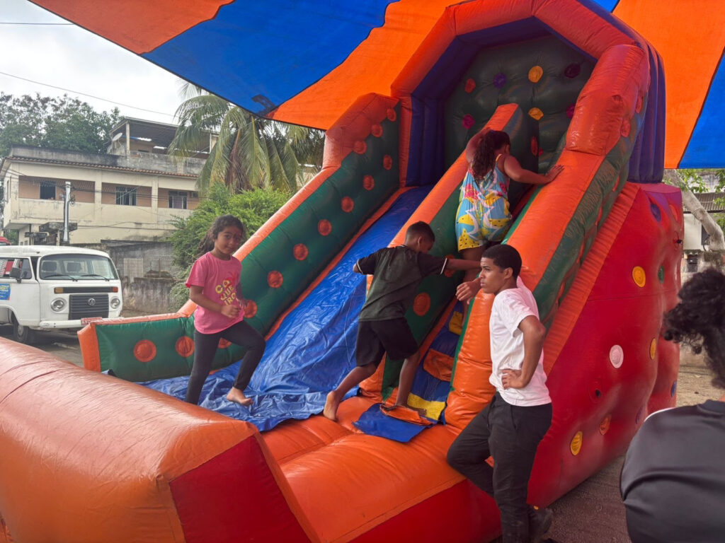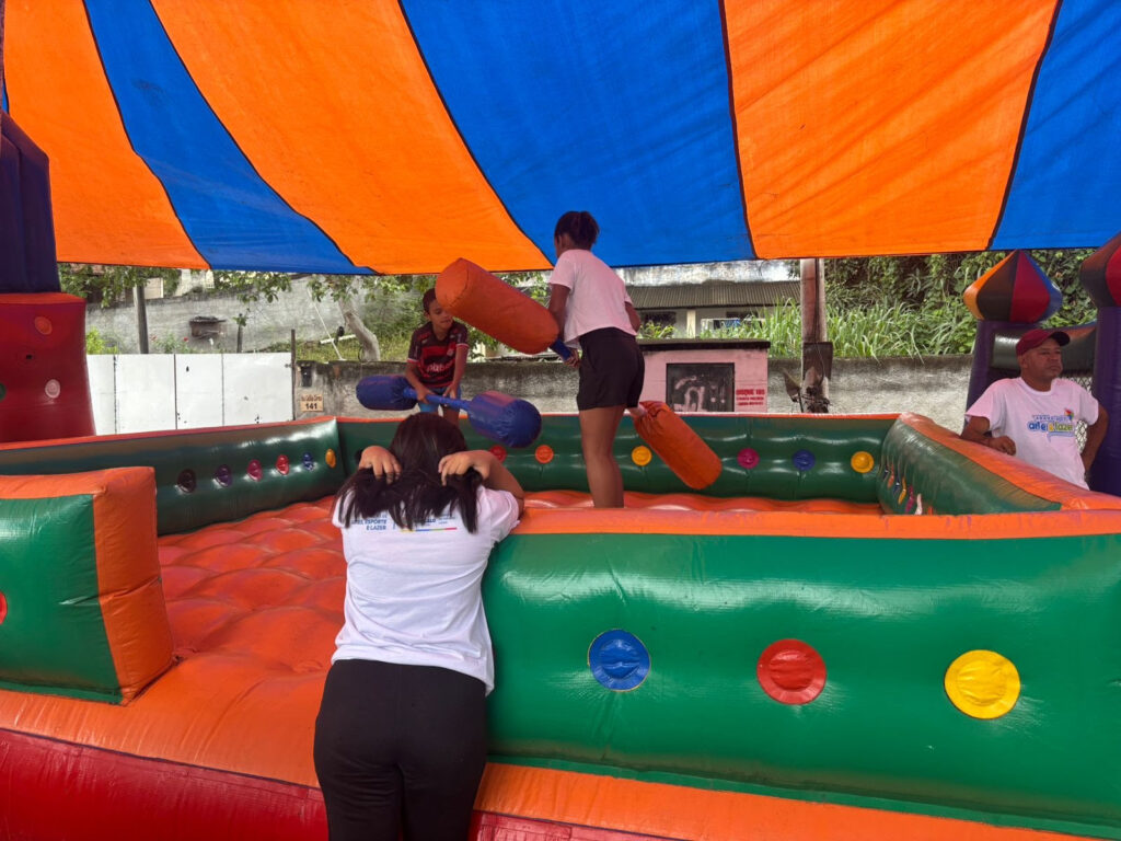 A Caravana de Arte e Lazer, projeto da Fundação de Artes, Esporte e Lazer de São Gonçalo, levou alegria e entretenimento na manhã deste sábado (20) a famílias do bairro de Tribobó. Com uma programação repleta de atividades, as crianças aproveitaram brincadeiras, pula-pula, piscina de bolinhas, presença de personagens vivos e pintura artística, garantindo momentos de diversão e convivência.