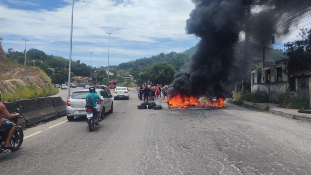 Uma manifestação de moradores da comunidade da Nova Grécia provocou interdição parcial da RJ-104, na altura do km 6, na tarde deste sábado (3), em São Gonçalo. O protesto ocorre devido à falta de energia elétrica na região.