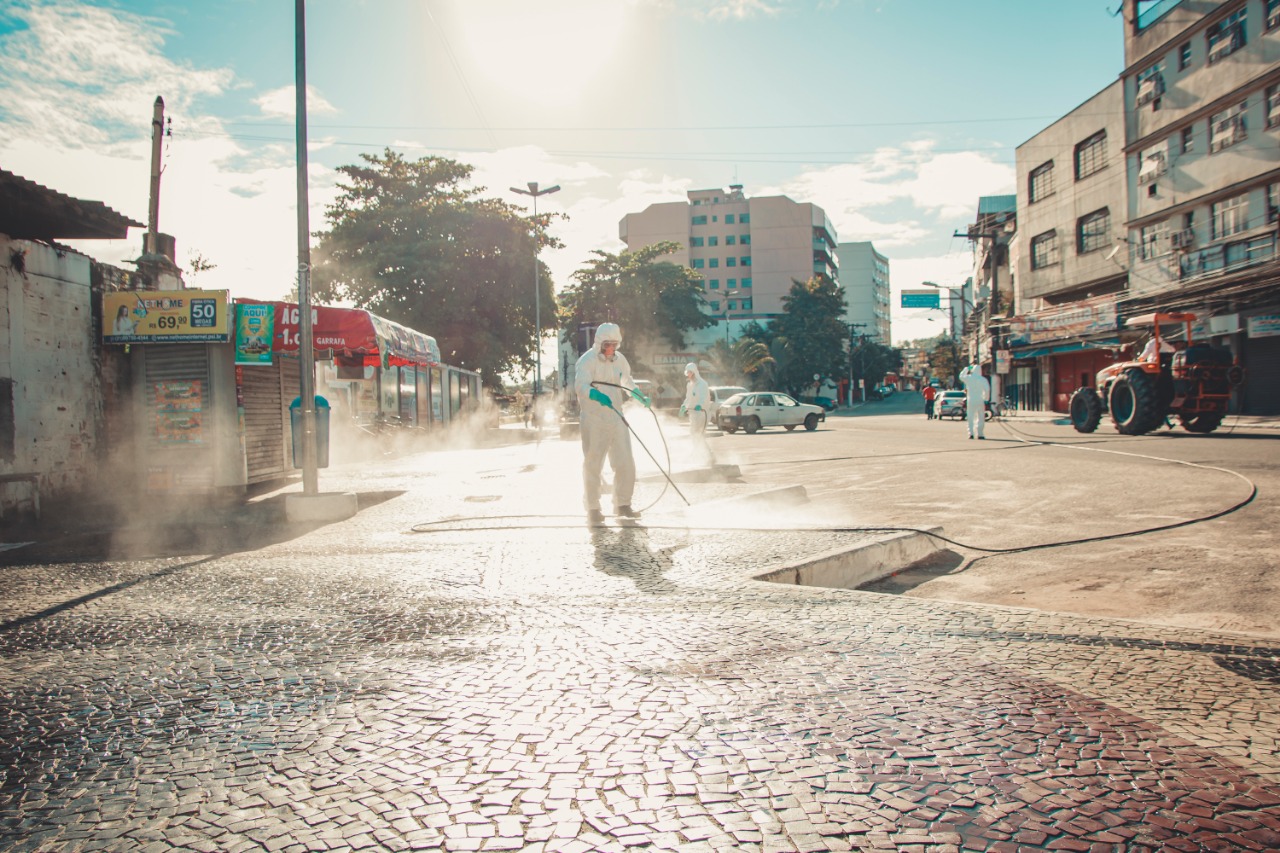 Rio Bonito faz higienização de ruas como medida de prevenção ao Coronavírus