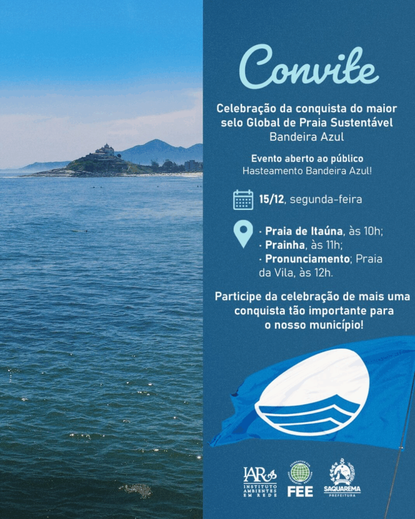 A Bandeira Azul é considerada o principal selo global de excelência para praias, marinas e embarcações de turismo, consolidando Saquarema como referência em turismo sustentável e gestão ambiental responsável.