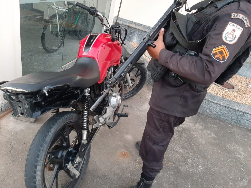 Agentes da Polícia Militar recuperaram uma motocicleta nesta segunda (27) durante operação na localidade da Usina. Um homem foi preso na ação.