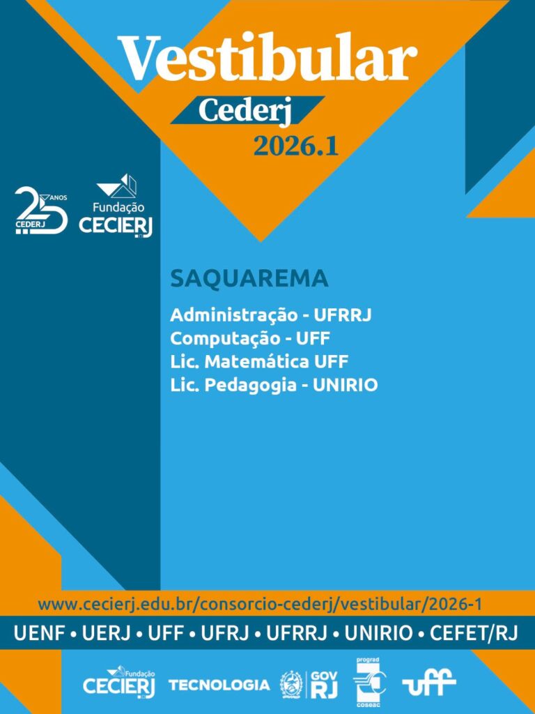 O Centro de Educação Superior a Distância do Estado do Rio de Janeiro (Cederj) está com inscrições abertas para o vestibular do primeiro semestre de 2026. São 7.355 vagas distribuídas em 16 cursos semipresenciais, oferecidos por universidades públicas do Estado do Rio. Em Saquarema, há 120 vagas nos cursos de Administração (UFRRJ), Computação (UFF), Licenciatura em Matemática (UFF) e Pedagogia (UNIRIO).