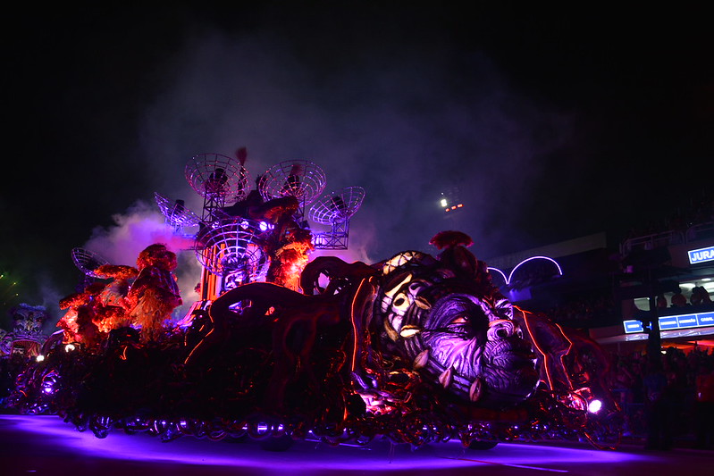 Atual vice-campeã, a Grande Rio apresentou um enredo inspirado no movimento Manguebeat. A escola apostou em uma abertura com luzes apagadas, contrastando com os tons roxos das primeiras alas — referência à lama fértil dos manguezais.