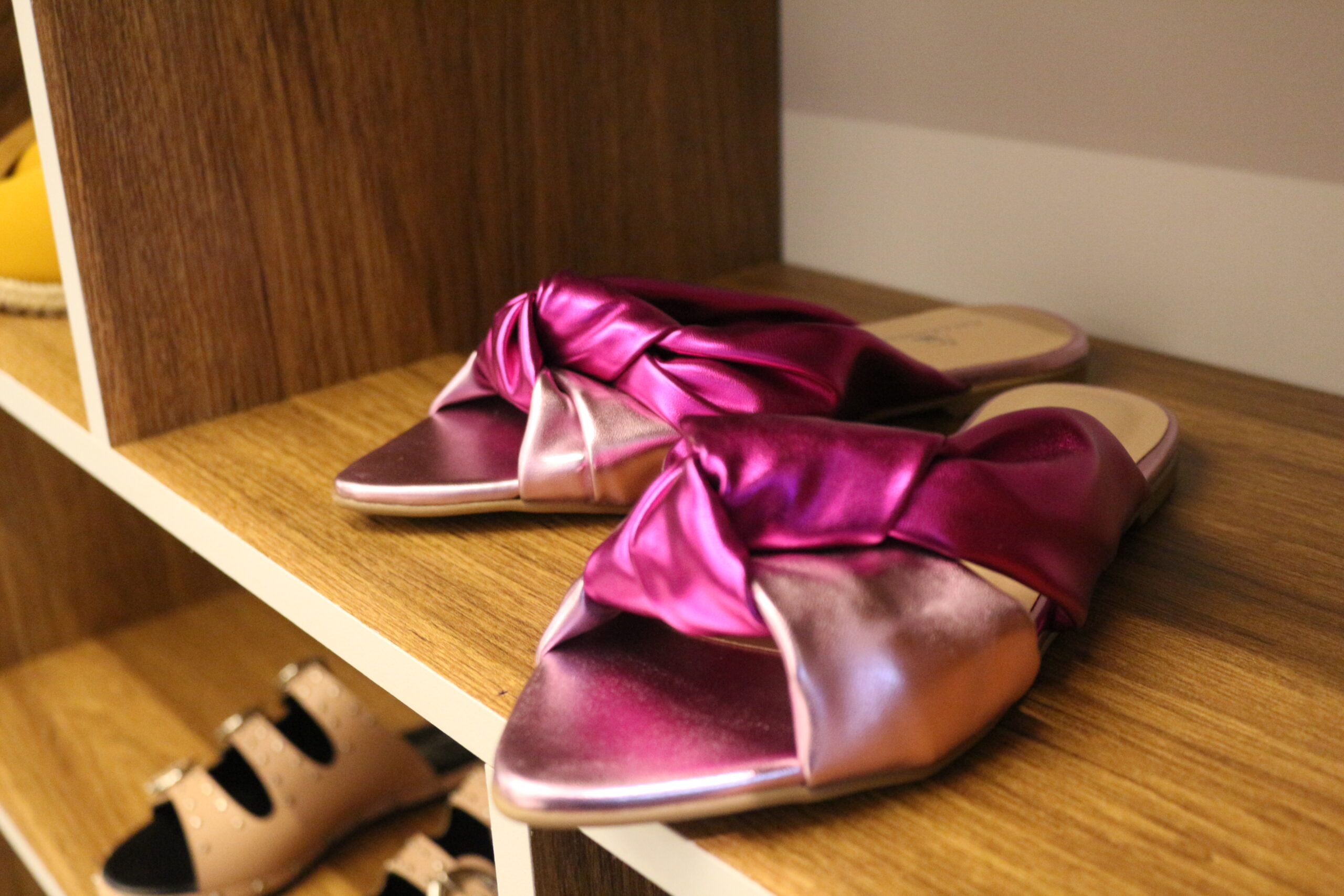 Elas estão sempre pesquisando tendências de moda e lançam novos modelos de sapatos, bolsas e acessórios toda semana em suas lojas.